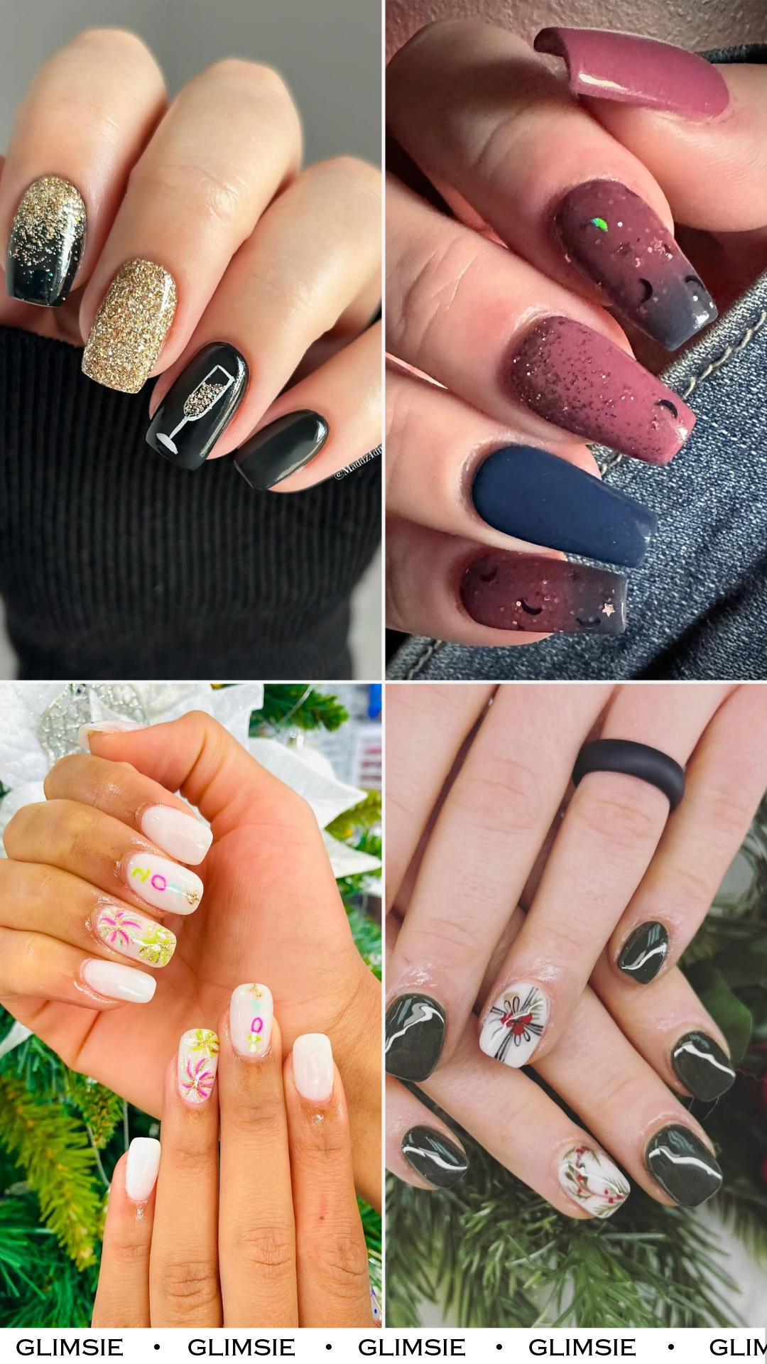 A rich wine shade with a glitter accent is one of those combinations that never fails. It’s elegant, flattering, and instantly makes your hands look put-together.