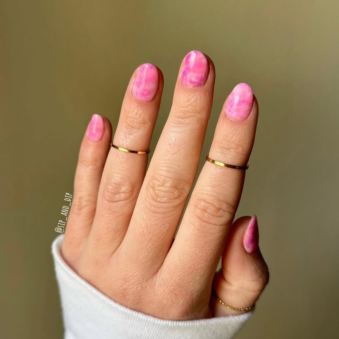 Soft pinks with that cloudy marble effect feel fresh, playful, and a little dreamy. It’s subtle enough for everyday wear but still interesting when you actually look closely.