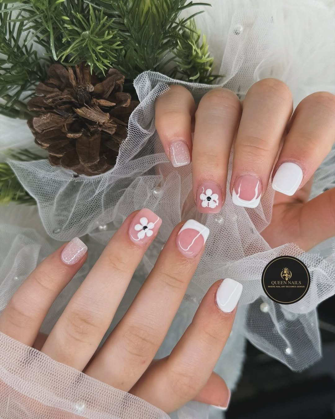 It’s giving winter garden vibes—calm, pretty, and wearable. Great if you like nail art but still want something balanced.