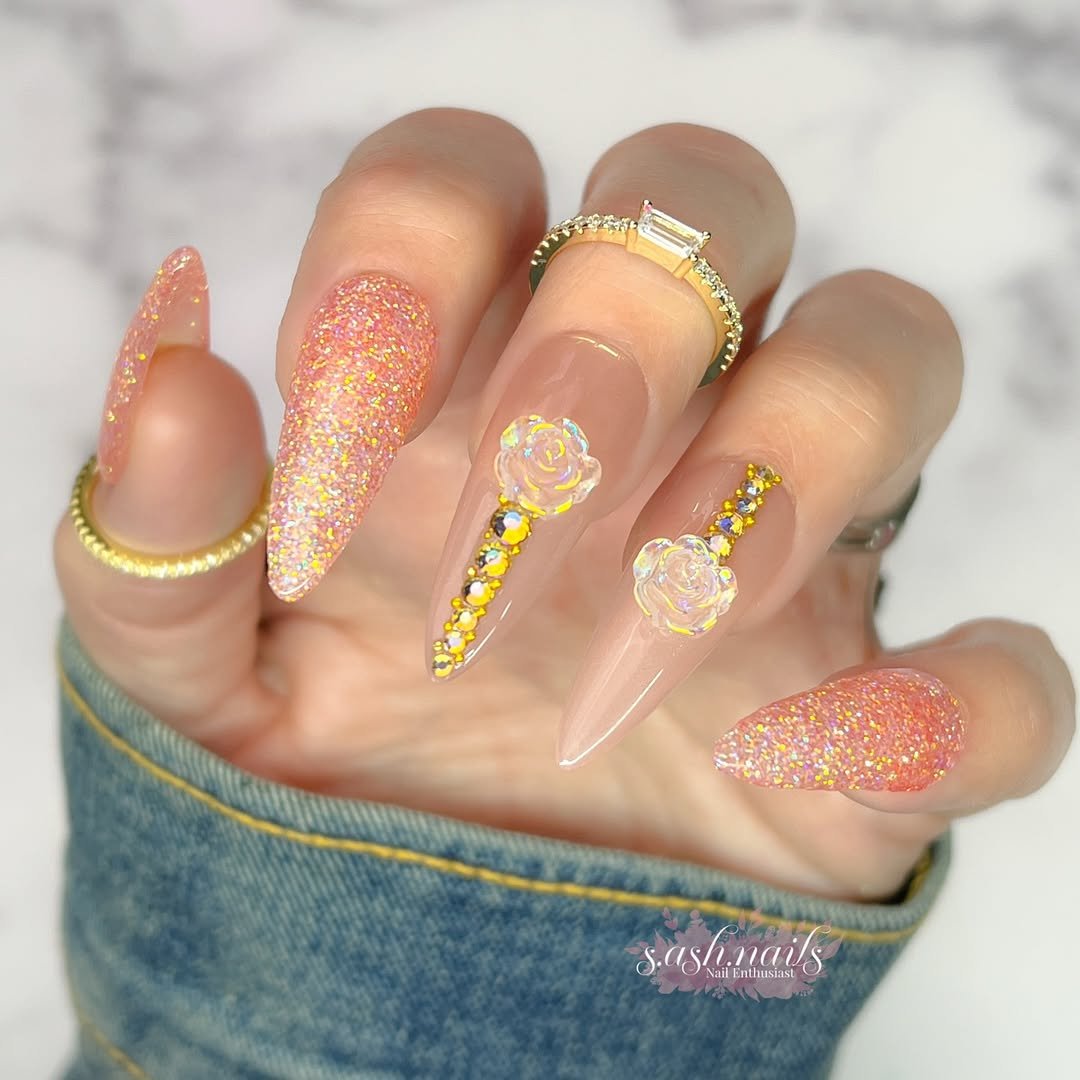 Okay, this one does not whisper. Between the glitter-packed dips and crystal details, this set is fully in its main-character era. It’s bold, shiny, and unapologetically glam.