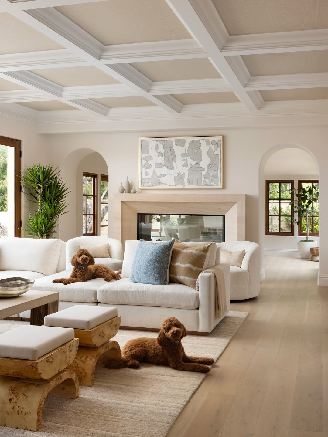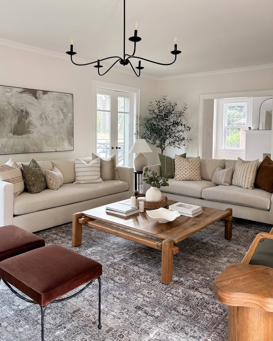 This room leans into a timeless palette of creams, woods, and soft textures. The structured layout feels polished, while the earthy tones keep it grounded and approachable. It’s classic, but never stiff.