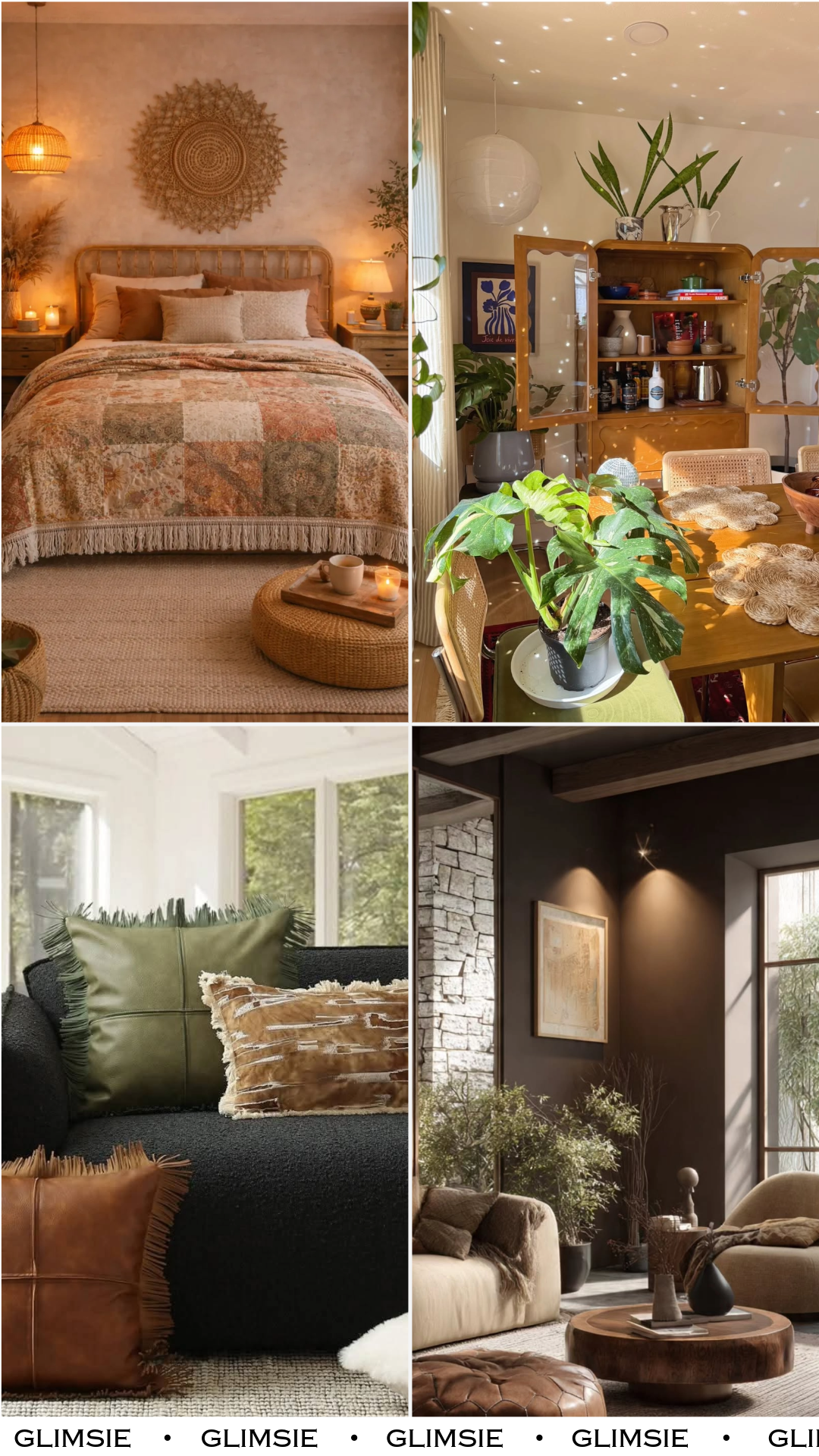 This room feels like golden hour, bottled. Woven textures, soft amber lighting, and layered textiles come together in a way that feels intimate and comforting. It’s the kind of space you settle into at the end of a long day.