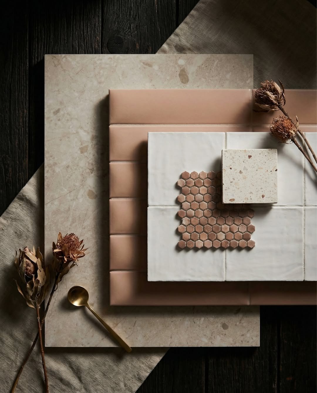 Each piece feels intentional. The subtle variation in tones, the geometric shapes, even the dried florals, it all creates a quiet composition that draws you in.