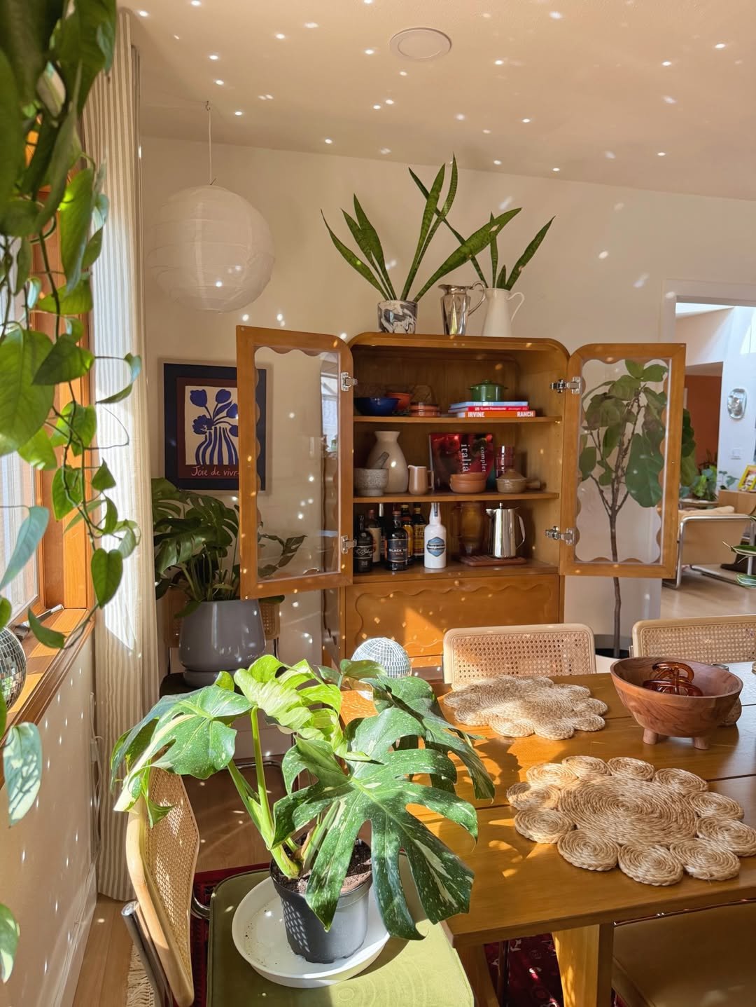 And I love how the greenery frames everything. It’s not just decoration, it becomes part of the room’s atmosphere, making the whole space feel fresh, relaxed, and just a little bit dreamy.