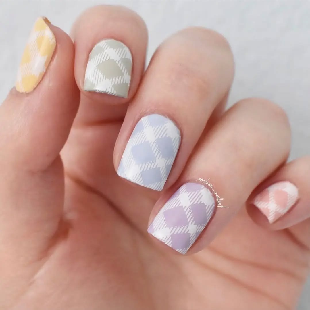 If Easter had a picnic blanket, it might look like this. Soft pastel plaid patterns sweep across the nails in dreamy shades of lavender, butter yellow, sage, and blush, giving the manicure a charming countryside feel.