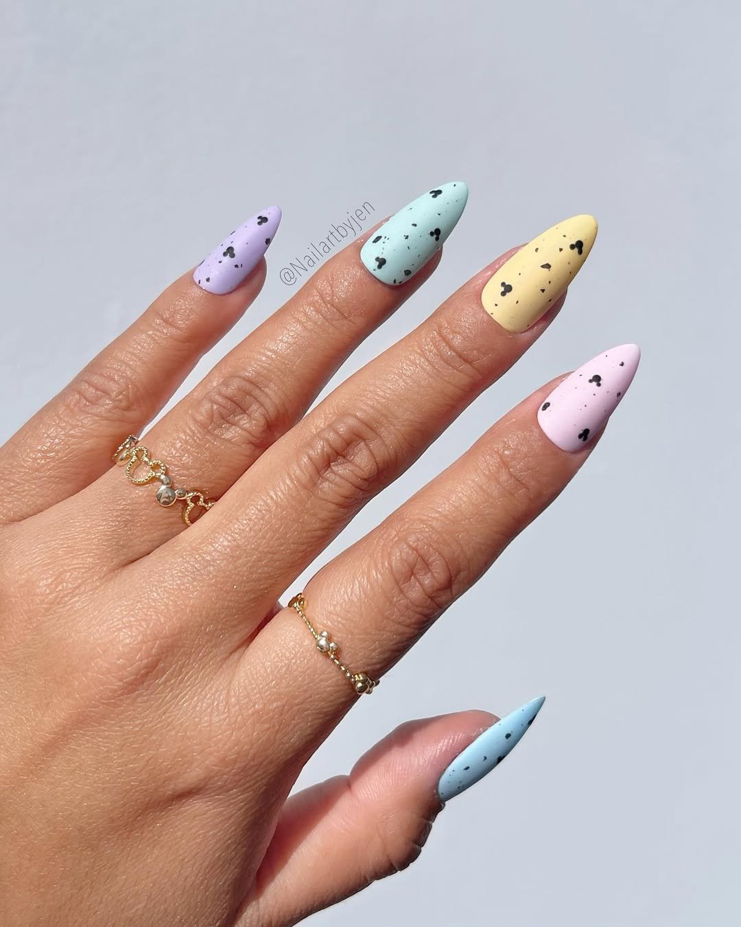 If chocolate mini eggs could turn into a manicure, this would be it. Matte pastels paired with soft speckling create such a clean, modern Easter look — simple but with a fun, trendy twist.