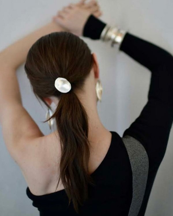 Here, the classic low pony gets a chic little upgrade with a rounded metallic clip that catches the light just enough. It’s sleek, uncomplicated, and ideal for days when you want your hair to look intentional with minimal effort.