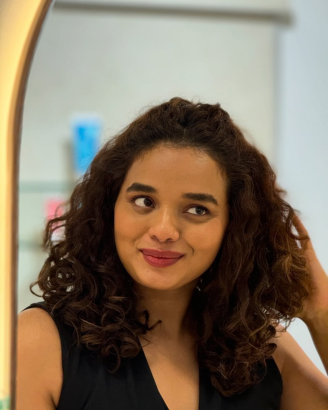 It’s that perfect in-between look: polished enough for a dinner out, relaxed enough for lounging at home. And the curls? Completely stealing the show.