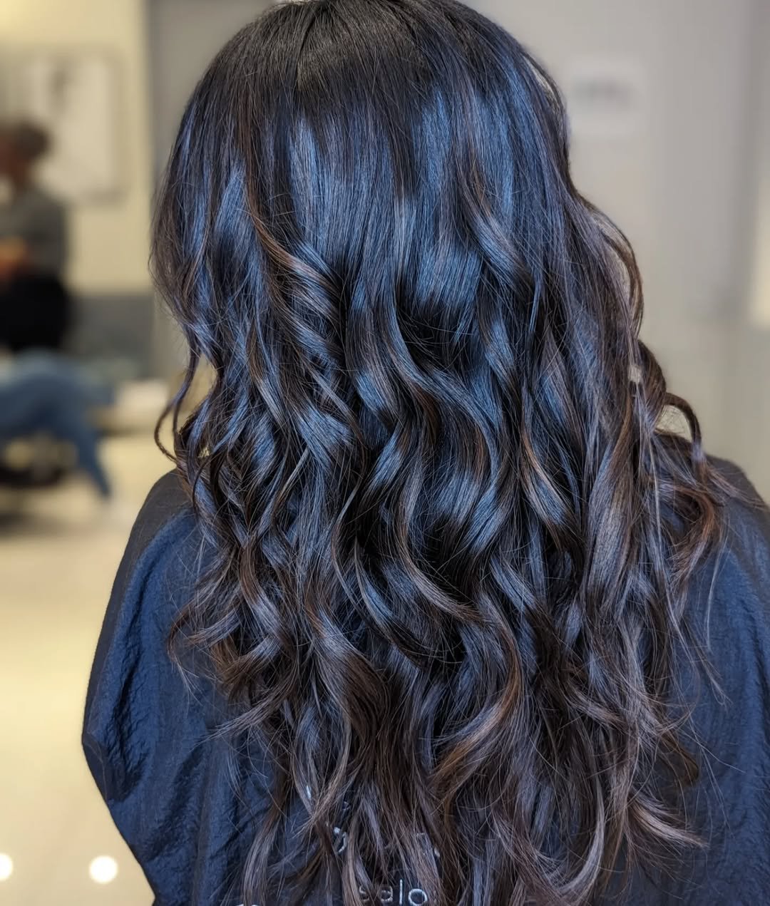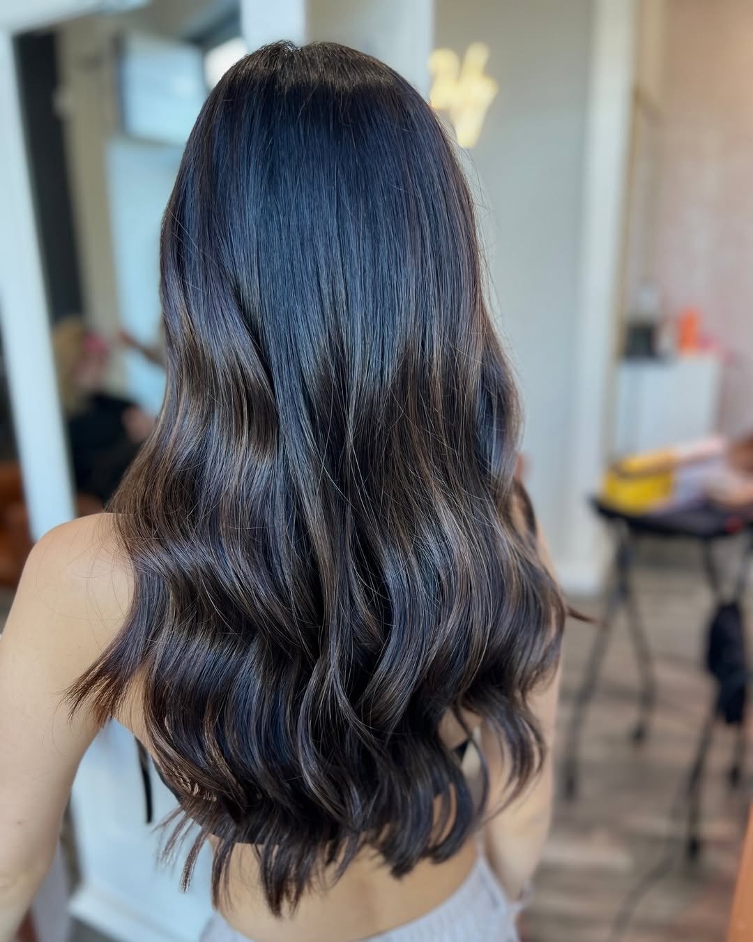 Cool brunette depth blends into soft, smoky highlights, giving this espresso look a modern, almost glossy-graphite vibe. The waves add gentle movement, creating a finish that feels fresh and effortlessly cool.