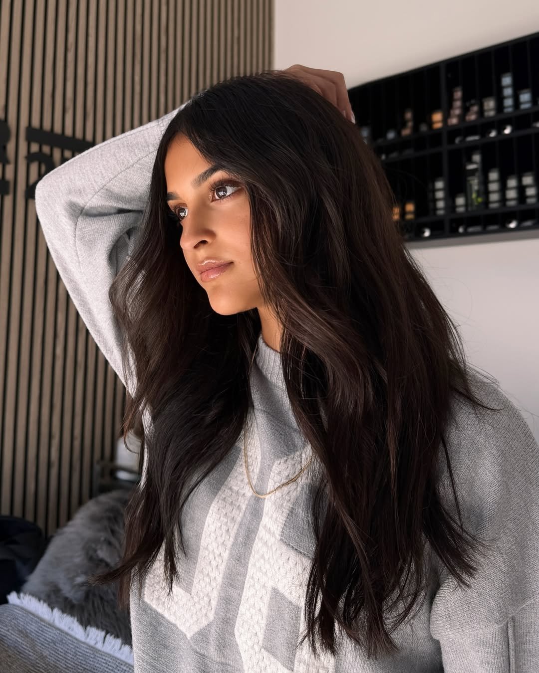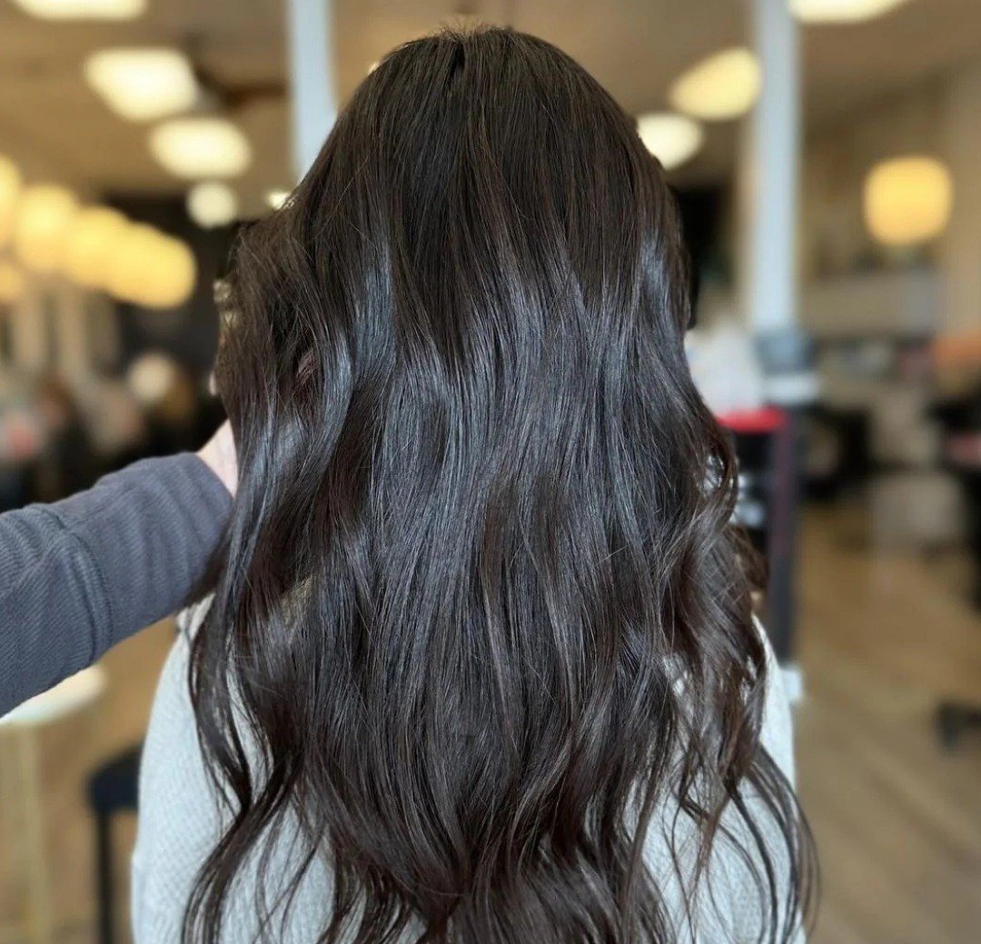 This classic deep espresso has a beautifully lived-in feel — relaxed waves, subtle dimension, and a silky finish that looks fresh from the salon but still natural. It’s understated in the most stylish way.