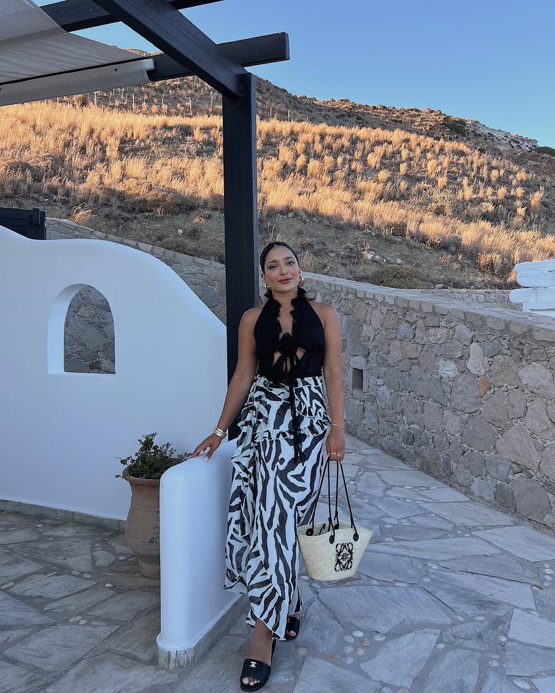 It feels classic, but not dated. Add simple sandals and a small bag, and it becomes the kind of look that fits right into seaside dinners and warm evenings.