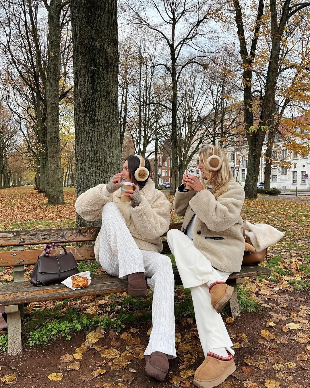 Matching teddy layers and soft neutrals make this feel like fall at its best. Warm drinks, quiet conversation, and outfits that look as comfortable as they feel.