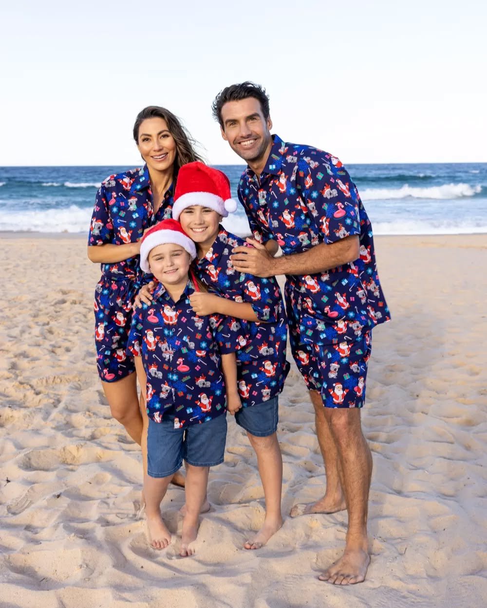 Matching family outfits always feel nostalgic, and this beachside holiday look captures that feeling beautifully. Coordinated prints, relaxed fits, and barefoot ease make it feel natural and joyful.