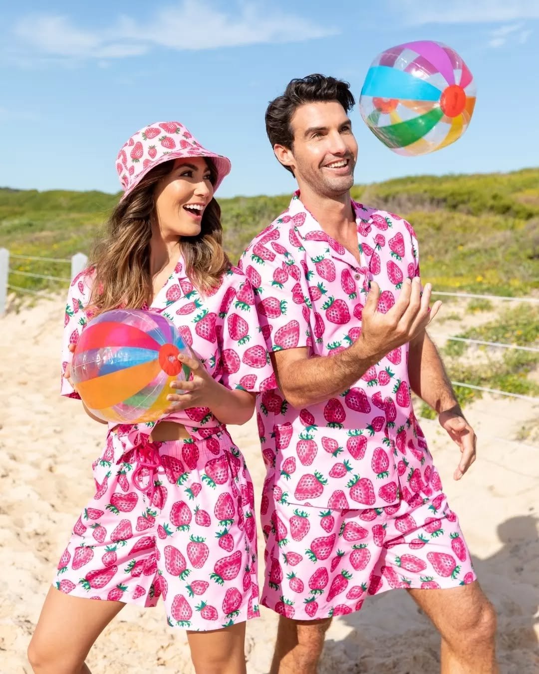 Matching strawberry prints instantly bring the joy here. Bright, playful, and perfectly suited for a beach day, these sets feel carefree and summery in the best way.
