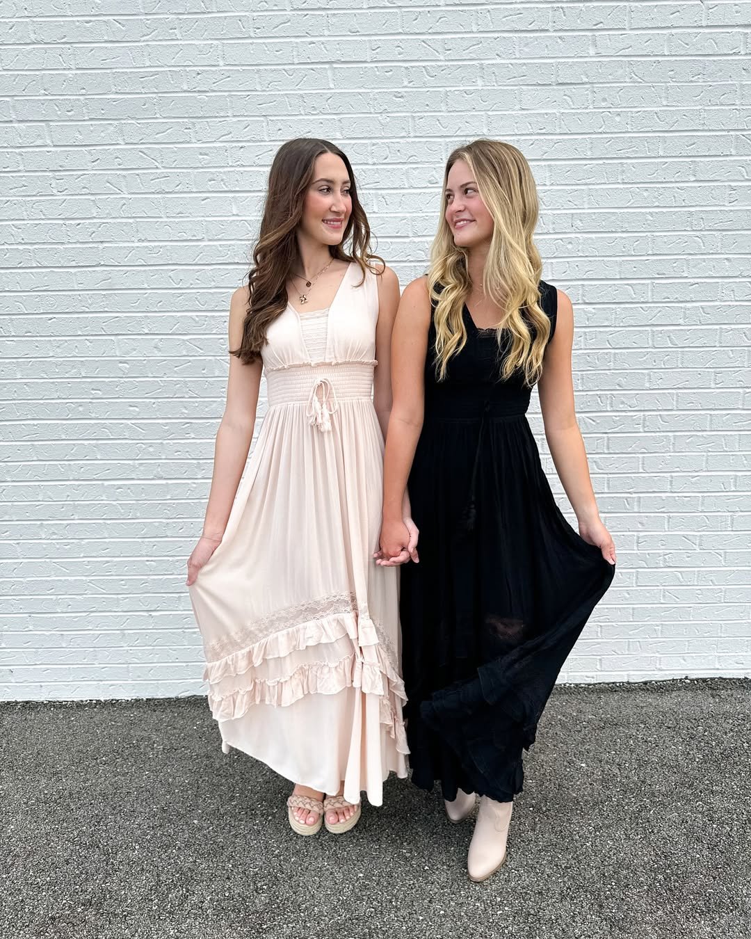 Matching red dresses always make a statement, and this pairing feels bold yet elegant. The shared color creates instant harmony, while subtle differences in design keep things interesting. It’s confident and timeless.