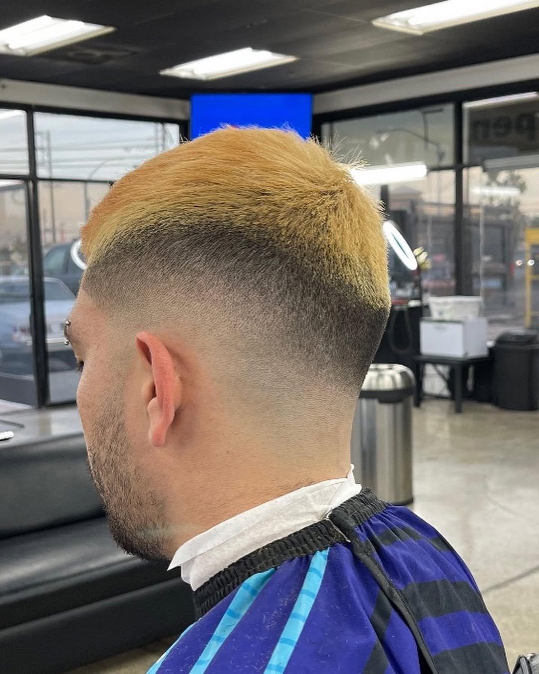 This cut brings bold contrast and clean craftsmanship together in one standout silhouette. The platinum-tipped blonde on top makes an unapologetic statement, while the fade below is so smooth it practically dissolves into the skin. It’s edgy, but polished—a perfect balance of rebellion and control.