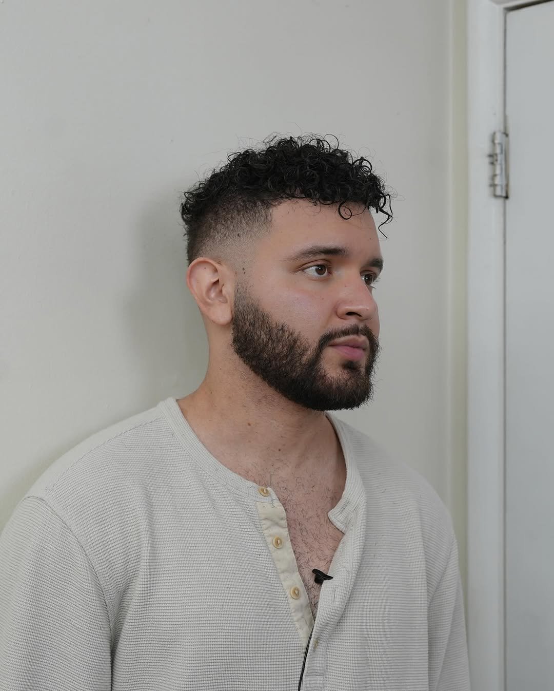 This cut is all about precision meeting texture. The tight shadow fade transitions seamlessly into naturally coiled curls, giving the look a clean yet effortlessly dimensional feel. It’s fresh, tailored, and ultra-flattering—especially for those who want to embrace their curl pattern without going full volume.