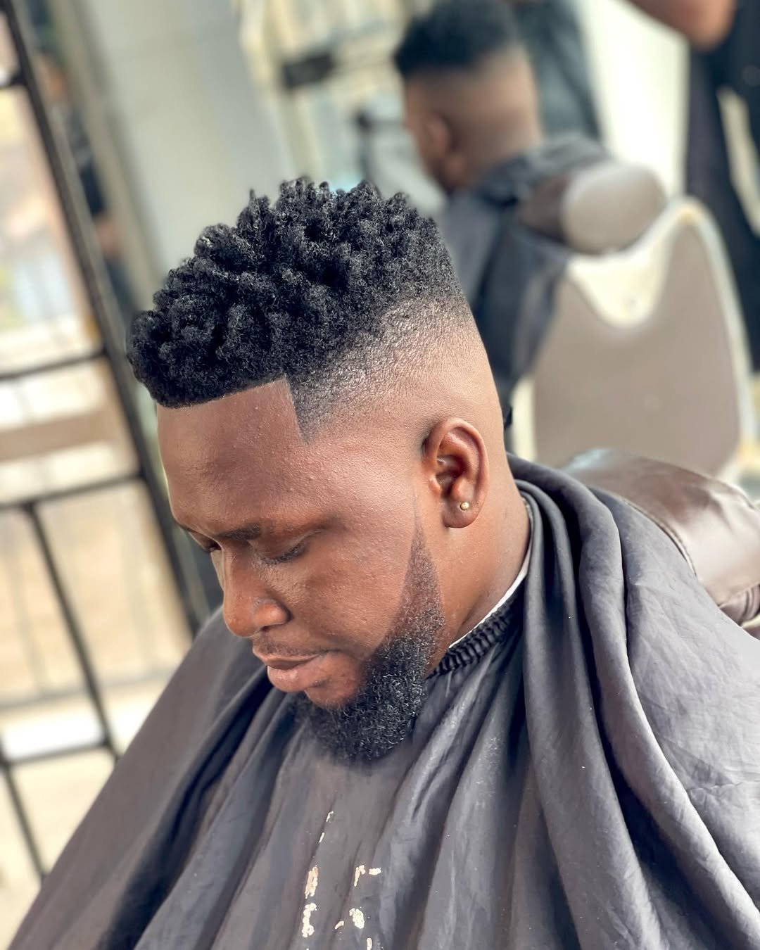 This cut is all about bold structure and crisp execution. The high top is shaped with clean angles, giving it a modern, sculpted edge while still embracing natural curl texture. It’s a nod to classic styles but with an ultra-fresh finish.