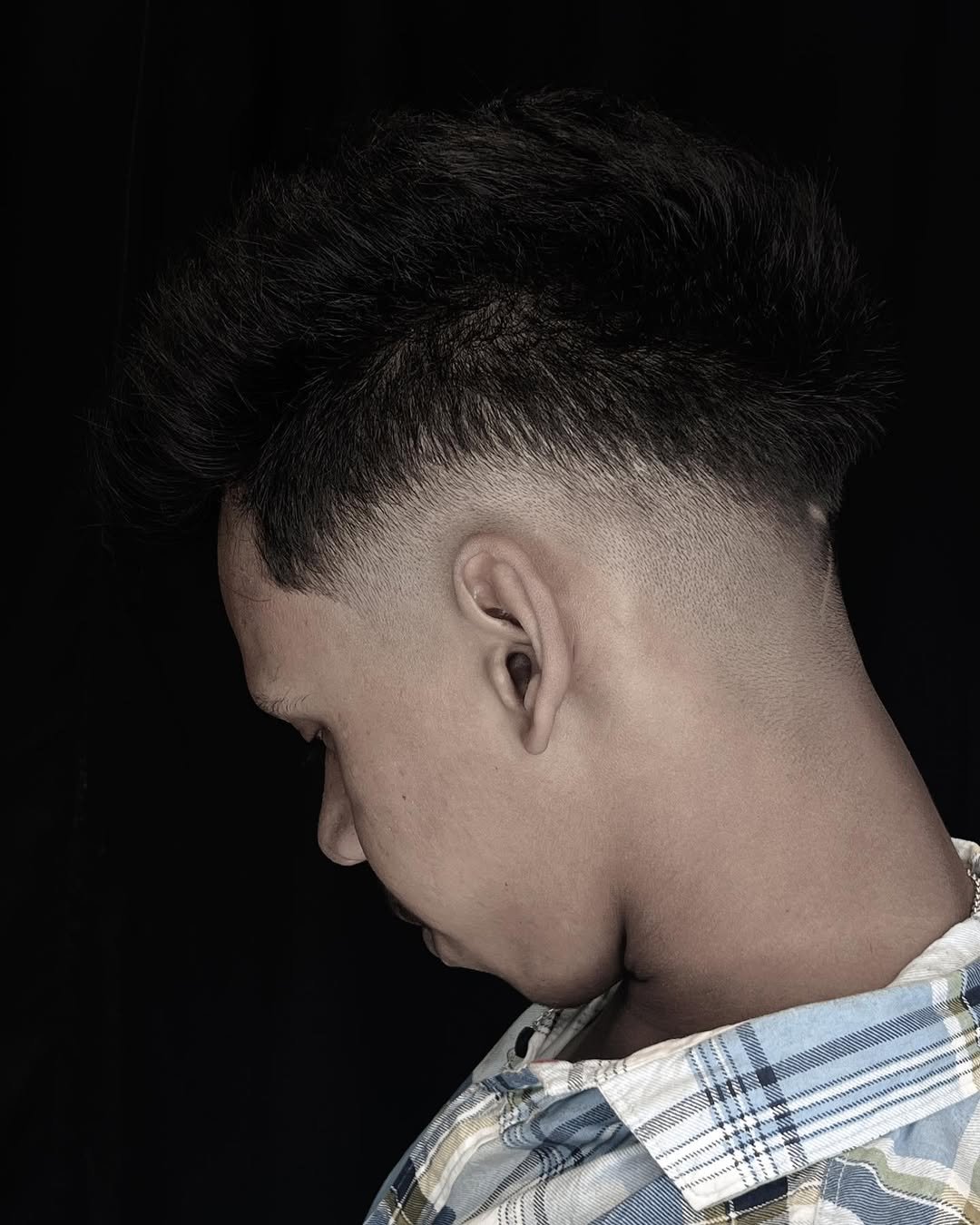 This cut is pure precision with a youthful twist—a fresh fade that’s clean, confident, and full of attitude. The mid-to-high skin fade keeps things sharp around the edges, while the textured top adds natural volume and character.