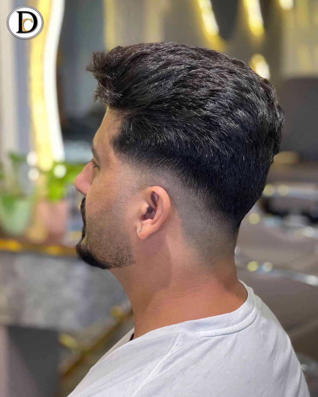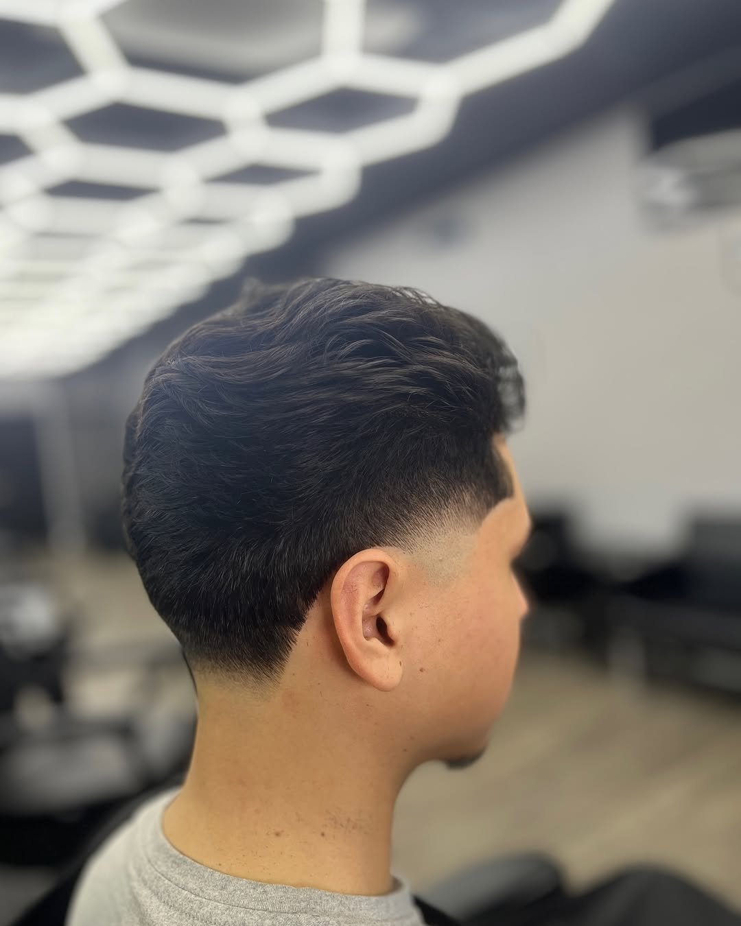 What stands out is how clean the fade blends into the neckline, creating a crisp profile from every angle. It’s a great choice for guys who like structure with movement, especially if your hair naturally holds volume or you like a slightly brushed-up style.