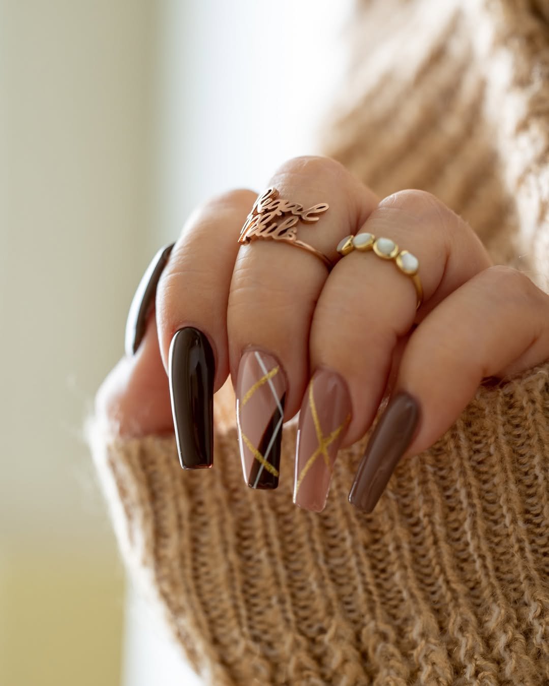 The structure is sharp (literally), but the aesthetic is all softness and warmth. If you’re someone who plans fall outfits around your latte order, this set’s your soulmate. Bonus points for the mix of finishes—matte meets raised gel = chef’s kiss.