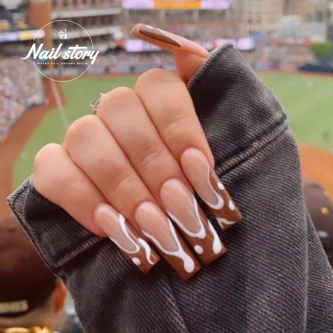 Chocolatey tips with melting vanilla swirls—this is dessert for your nails. There’s a reason this look’s popular at stadiums—it’s cute enough to flex from the stands and practical enough to survive snacks and selfies.