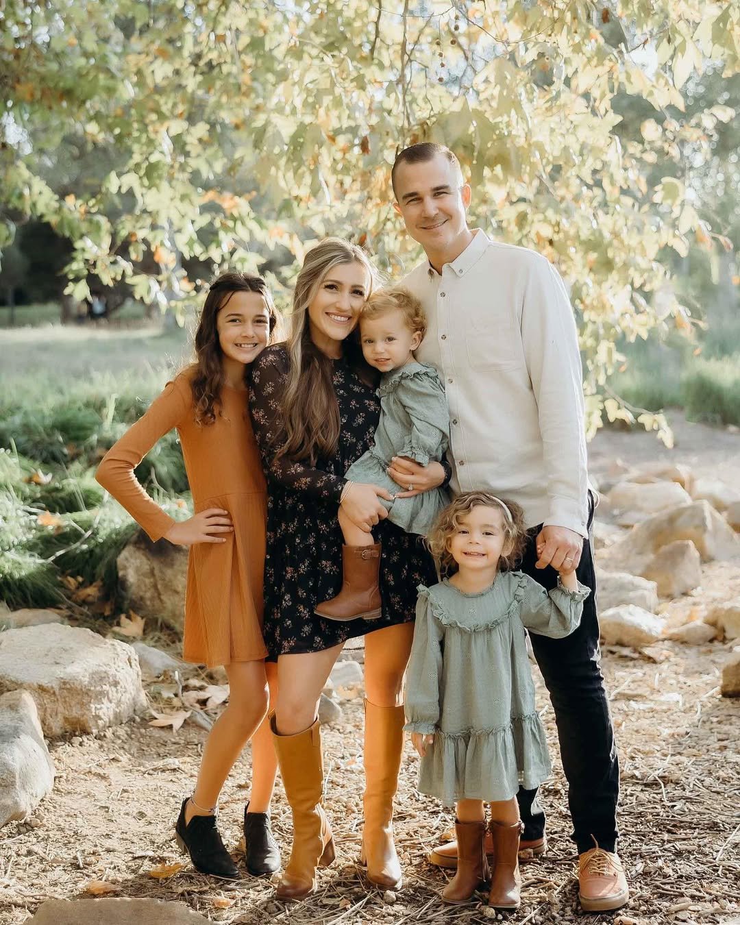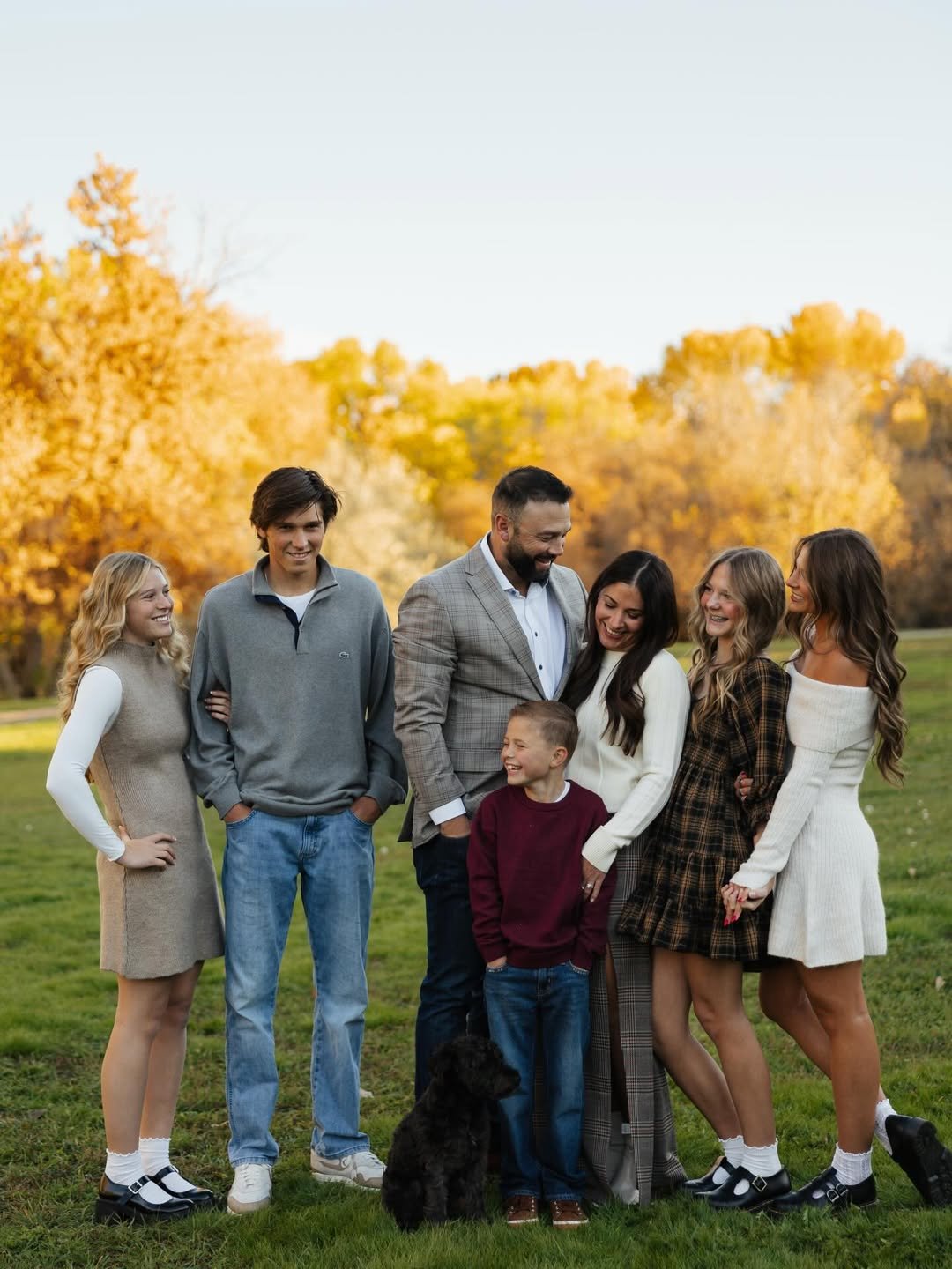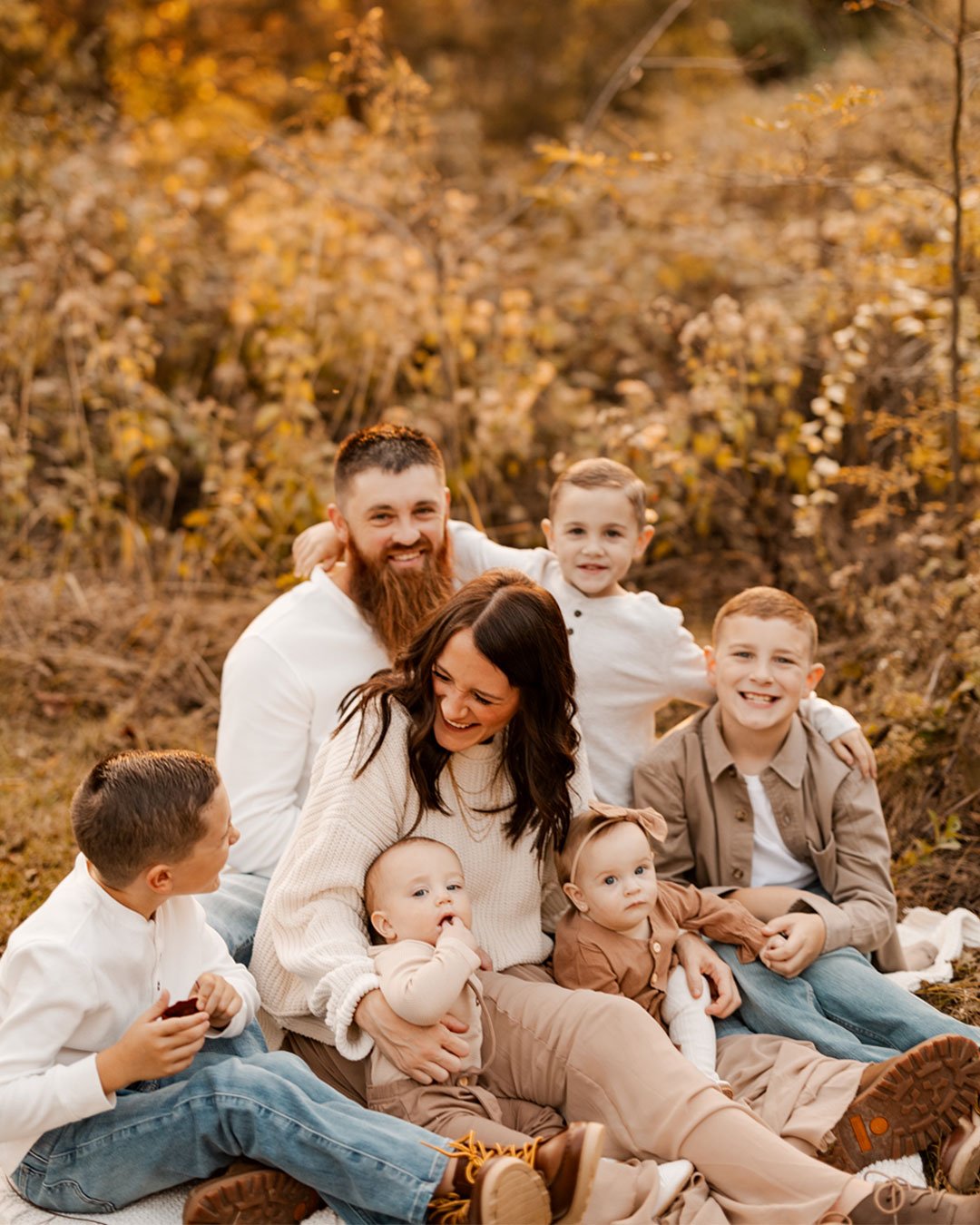 Soft beige, creamy whites, and pale neutrals under golden sunlight? Say less. The whole family looks cohesive without being overly coordinated, which is the sweet spot for fall photos.