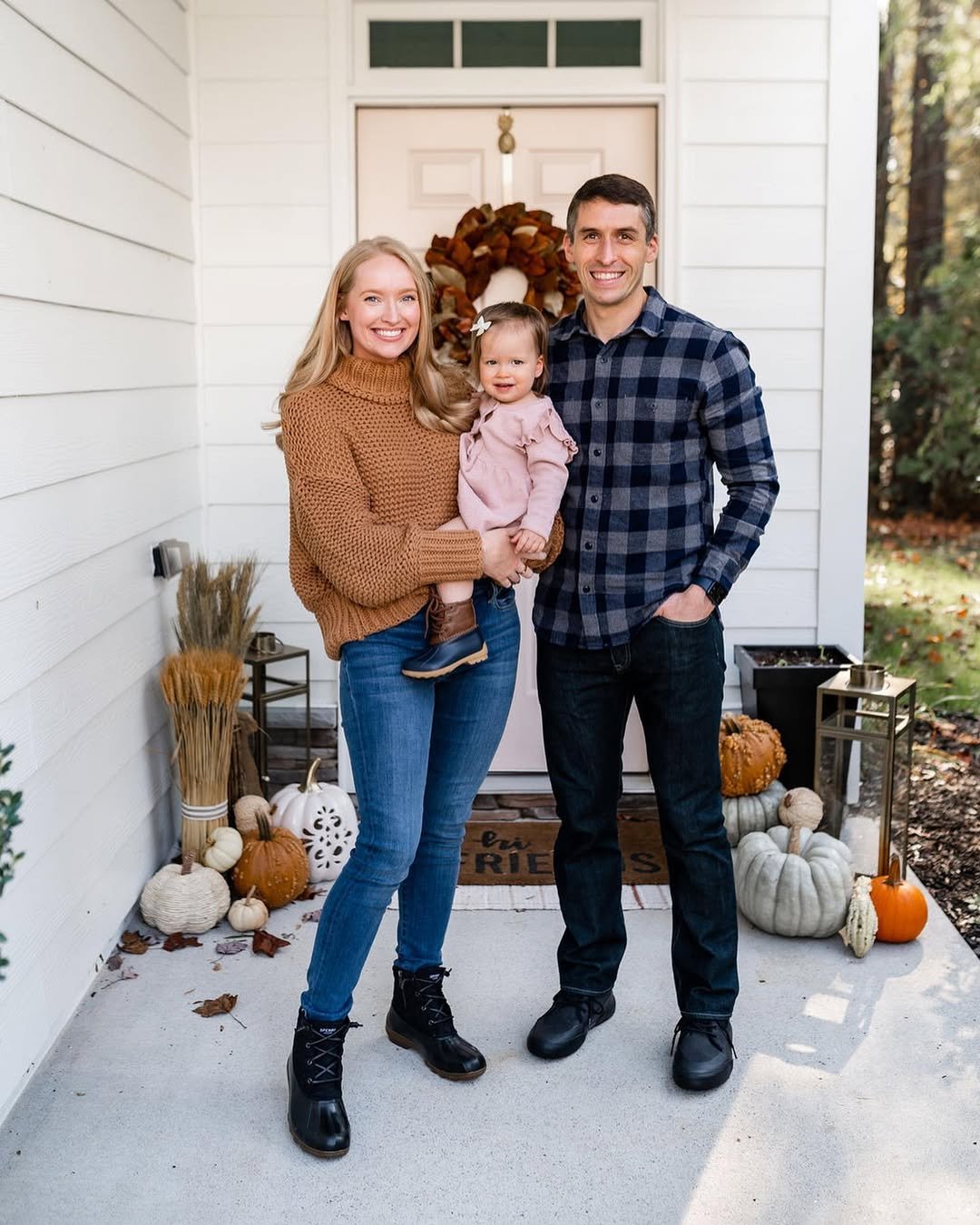 You can’t go wrong with plaid in the fall. Rust, camel, soft blues, and creamy neutrals blend into that perfect harvest palette without looking costume-y. The mix of patterns and solids keeps things playful, especially with little ones in coordinating flannels.