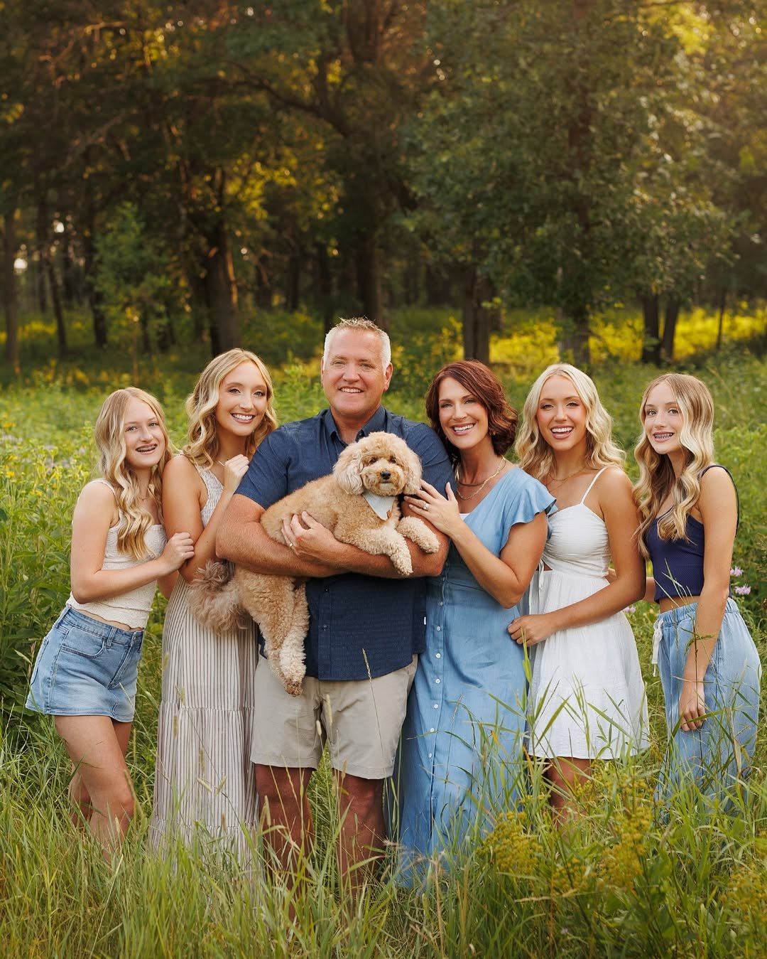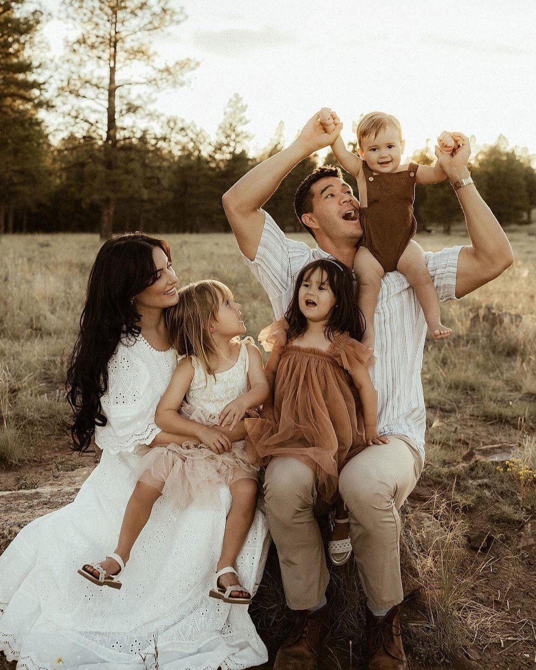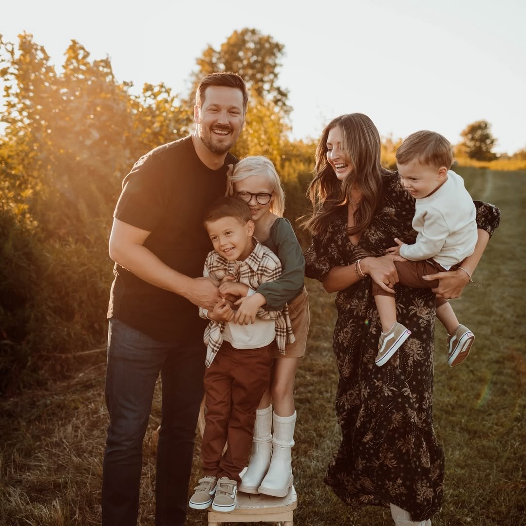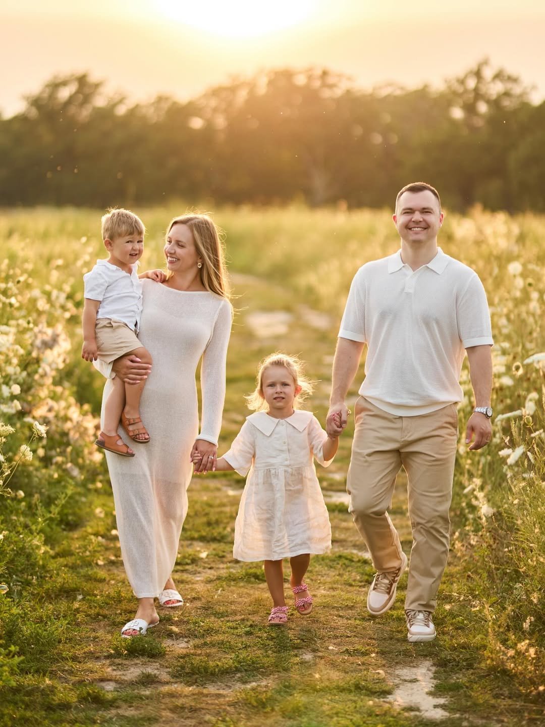 What makes this one special is the movement. The lifted toddler, the kids mid-laugh, the parents leaning in, it feels alive. It is the kind of image that captures not just how everyone looked, but how the moment felt.