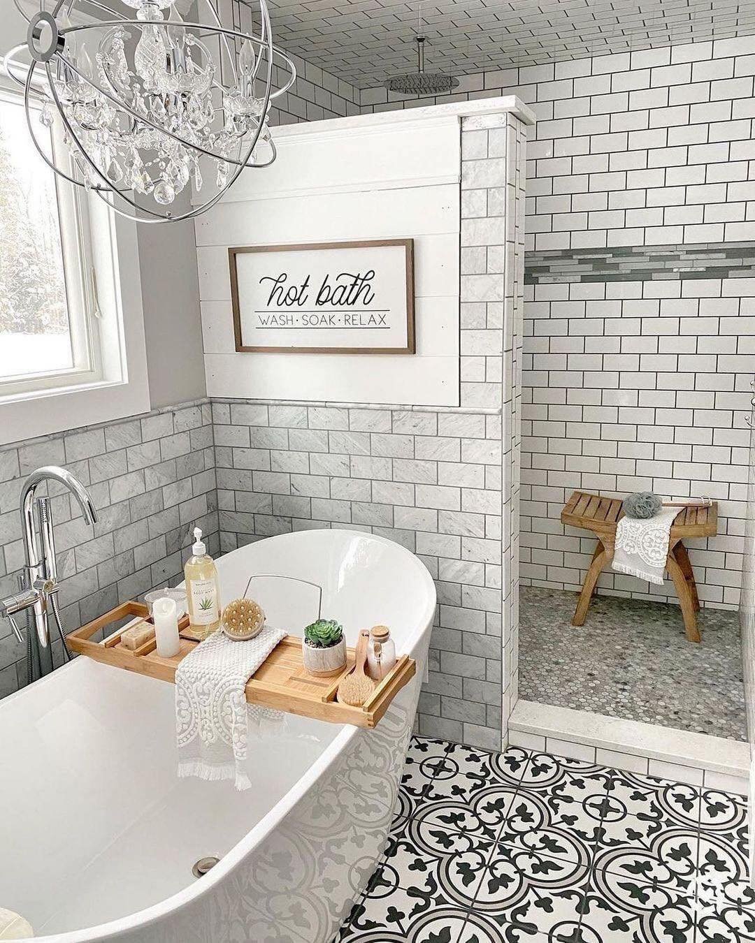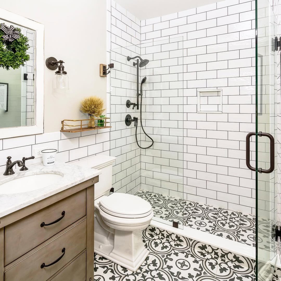 This one is all about simplicity done right. The classic subway tile and patterned floor combo just works every single time.