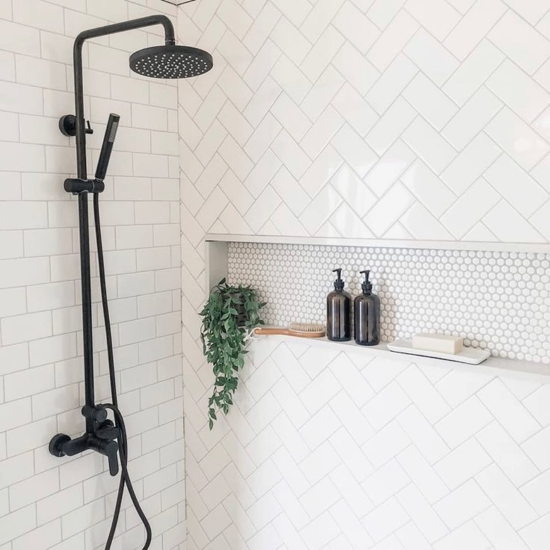 This is farmhouse at its purest. Clean white tiles, black fixtures, and just enough texture to keep things interesting.