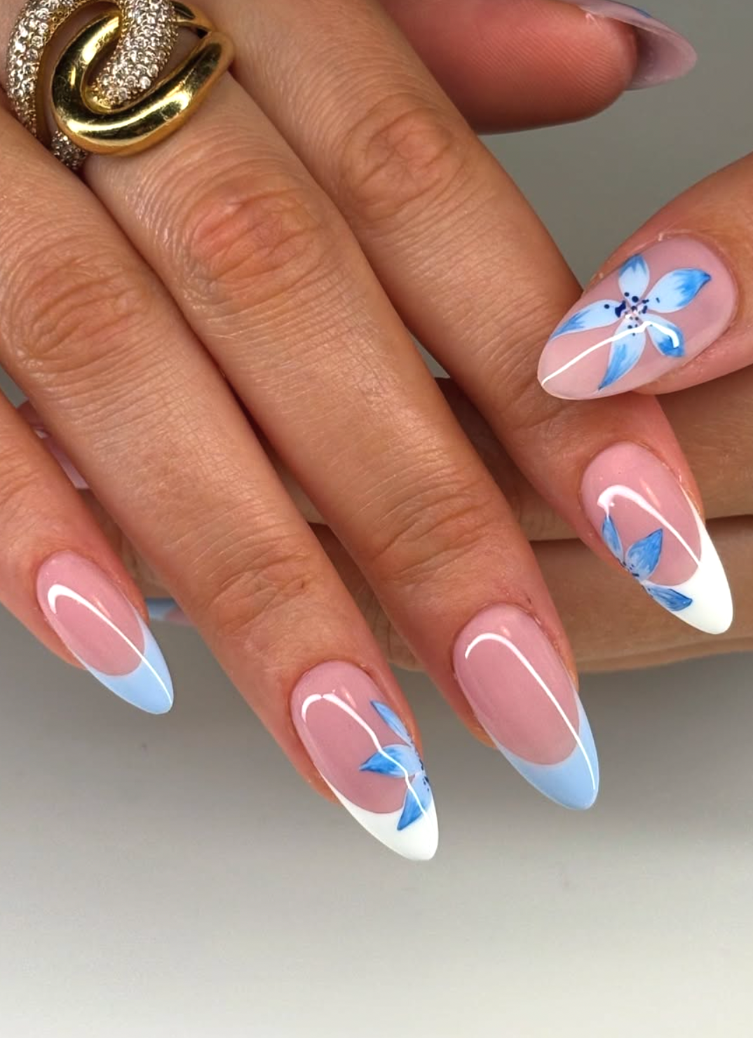 This blue-tipped French by @sevenailz is like a breath of cool morning air. The baby-blue edges feel soft and serene, while the hand-painted flowers add a delicate artistic touch. It’s airy, graceful, and surprisingly versatile.