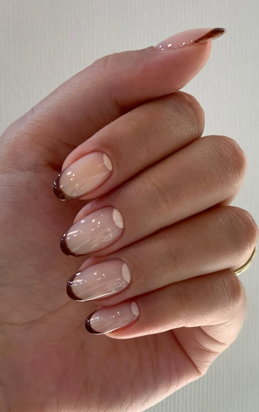 There’s a soft, moody richness to this cocoa-tipped French that feels instantly cozy. @monarostaminail keeps the base beautifully sheer and milky, letting the chocolate edges quietly shine. It’s the kind of mani you’d wear with a cream sweater and gold hoops—simple, warm, and undeniably chic.