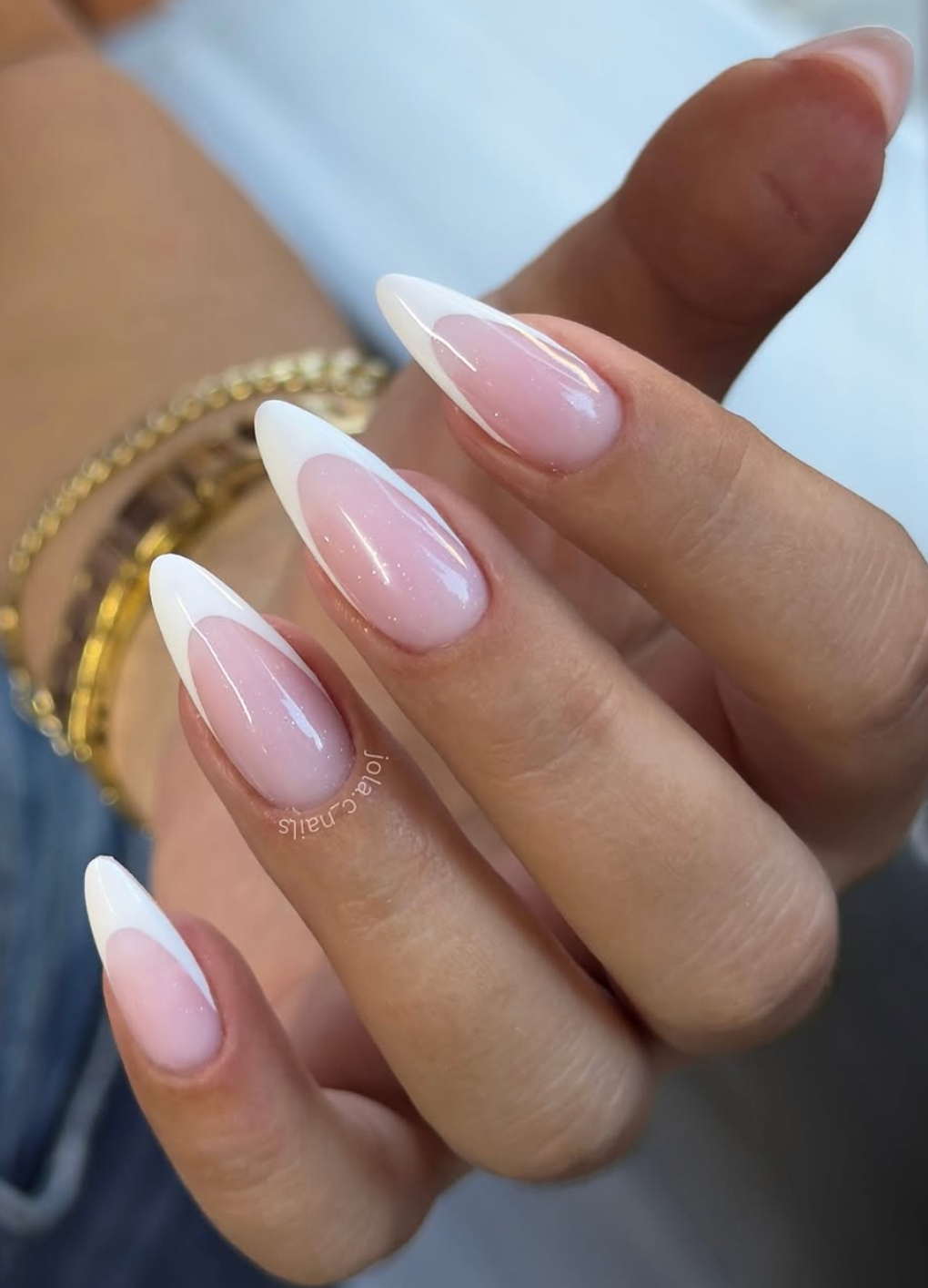 @jola.c_nails keeps things timeless with a delicate oval French, but the finish is so glossy and clean it almost looks like porcelain. The subtle blush-pink base melts into the sharp white tips, creating a mani that feels fresh, soft, and endlessly wearable.
