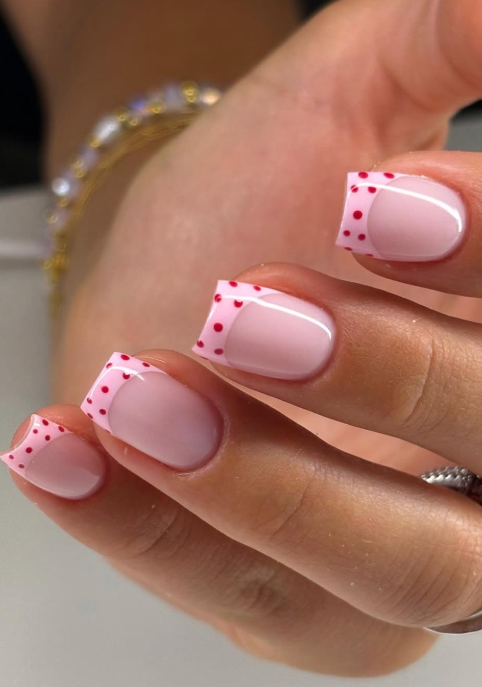 How cute is this? @sevenailz plays with bubblegum pink French tips dotted with tiny red spots, giving a fun, berry-sweet twist to the classic. The short, squared shape makes it feel even fresher—like a nod to Y2K, but ultra-polished.