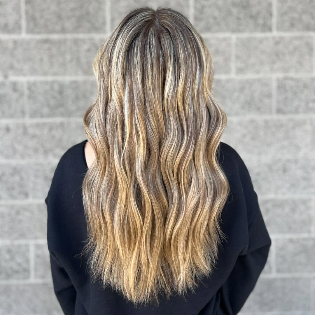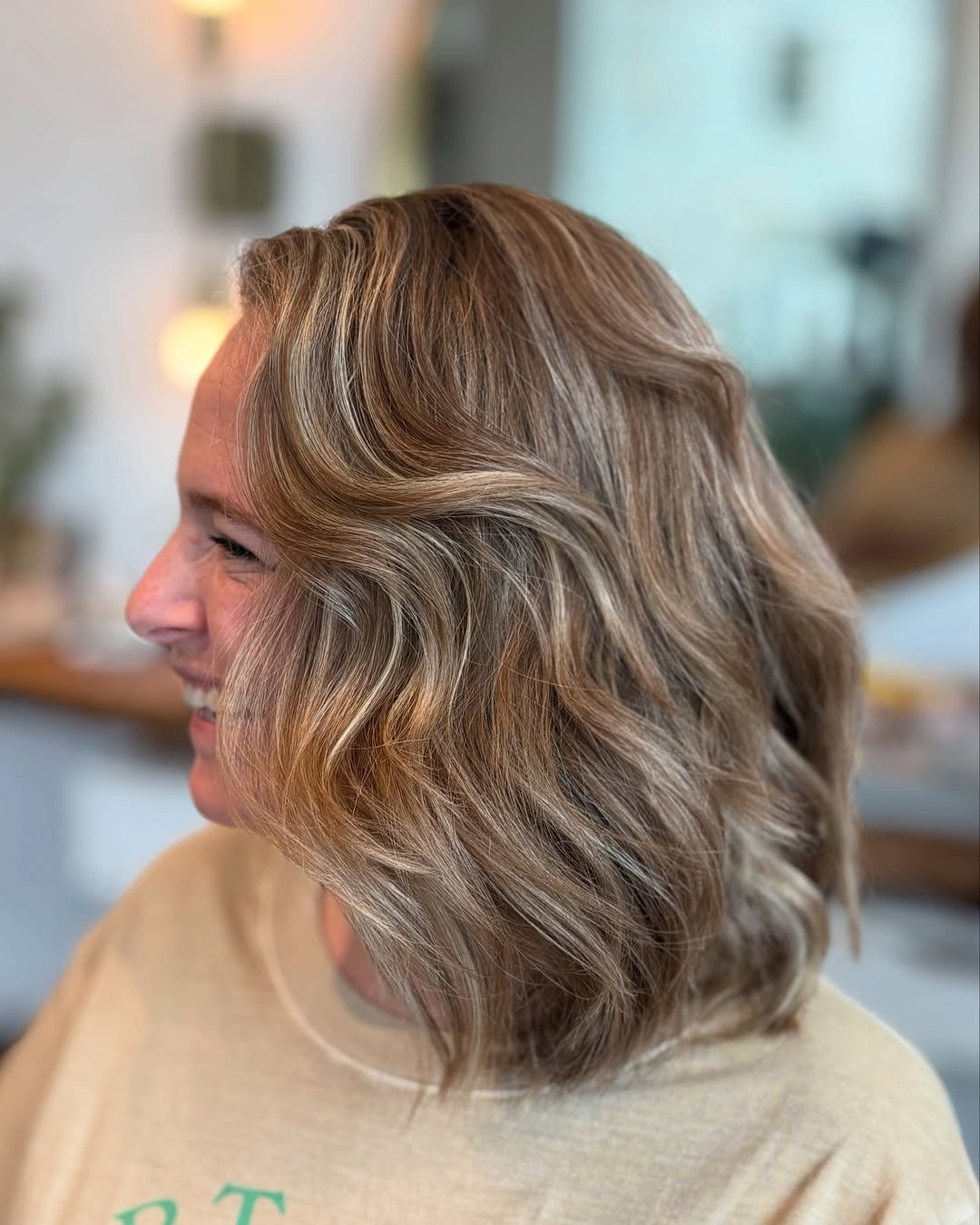 This is that “perfectly imperfect” spring hair. The blend of blonde tones and relaxed waves gives a sun-kissed, lived-in look that feels effortless and real.