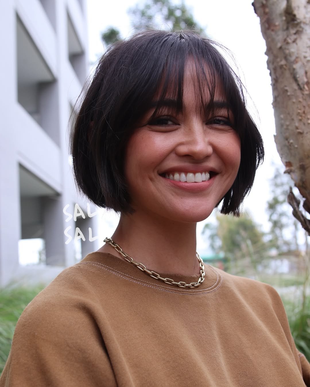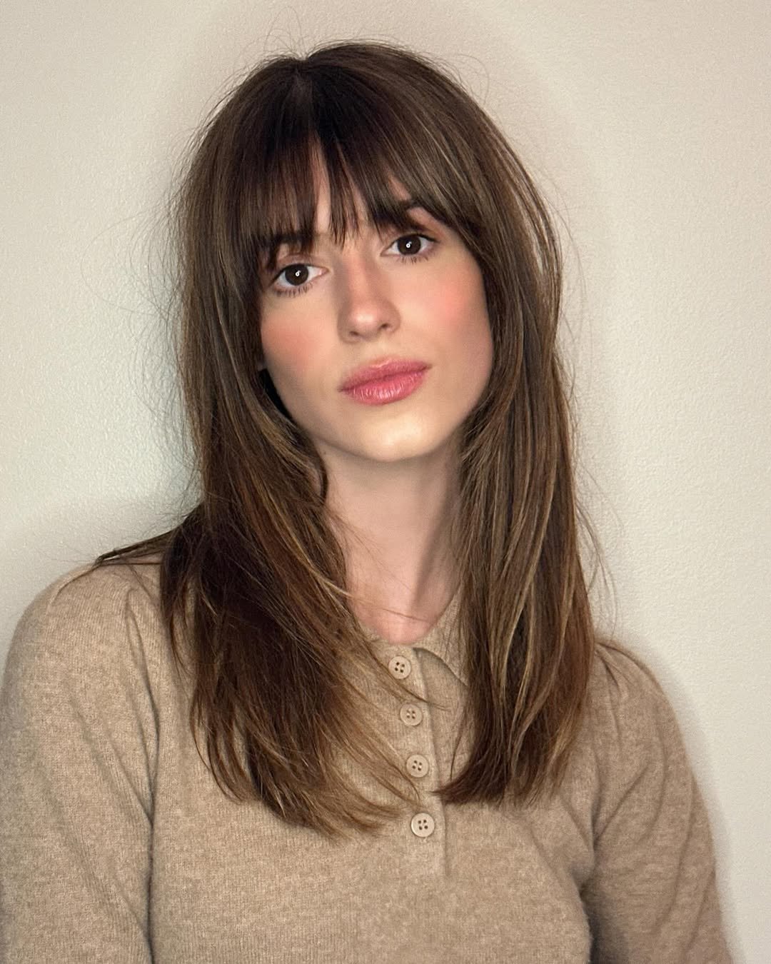 There’s something instantly refreshing about a fringe done right. This one feels light and airy, blending seamlessly into the rest of the cut for a modern, face-framing effect.