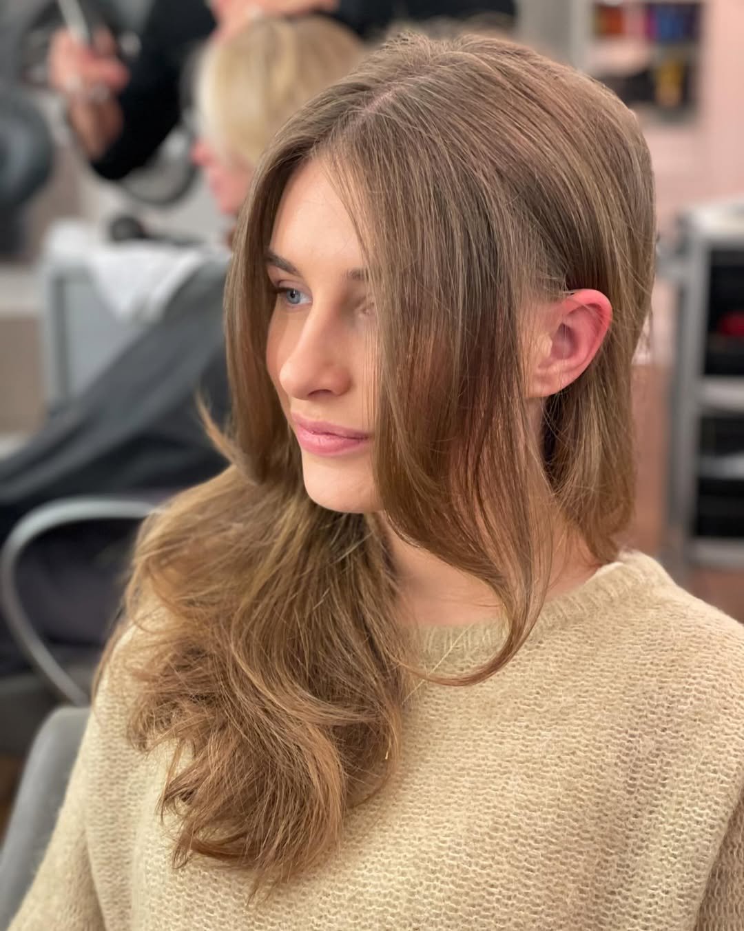This look is all about movement that feels natural, not overworked. The long, airy layers frame the face gently while keeping the overall length light and fresh—perfect for spring when you want change without the commitment. It has that “fresh haircut, no heavy styling” energy we all crave this season.