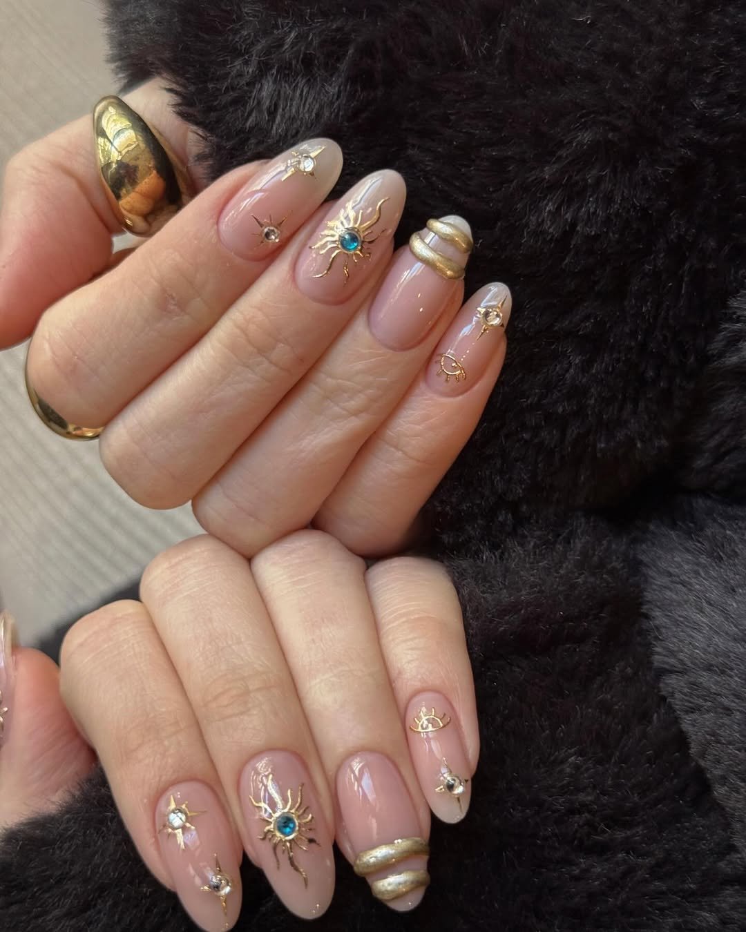 The gold detailing flows organically across each nail, almost like liquid metal. It feels refined, expensive, and just a little mystical.