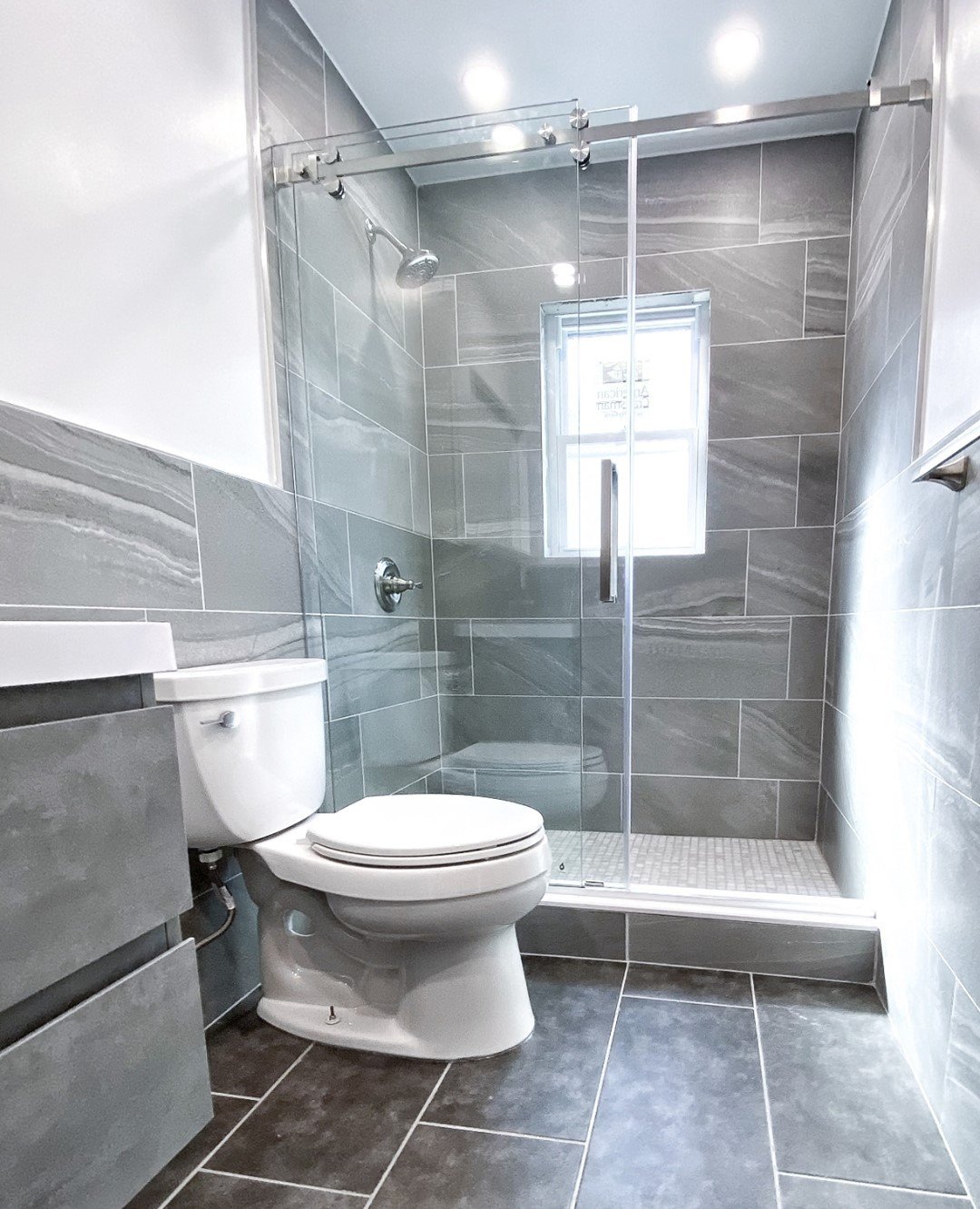 If you want something timeless, this is it. Soft grey tiles, simple fixtures, and a layout that just makes sense.