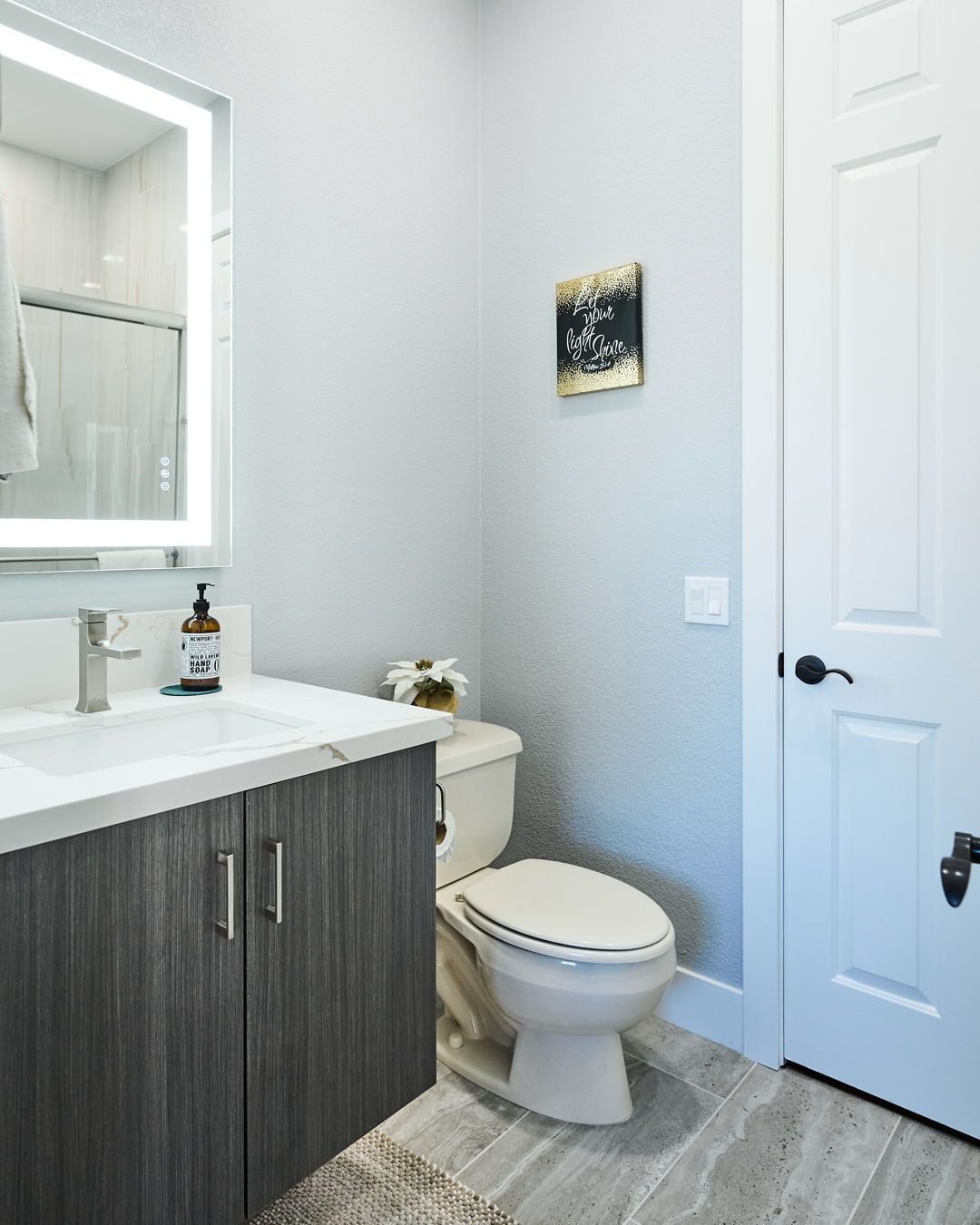 Compact, clean, and totally practical. This one leans into simplicity—straight lines, neutral tones, and just enough detail to keep it from feeling basic. It’s the kind of guest bath that just works.