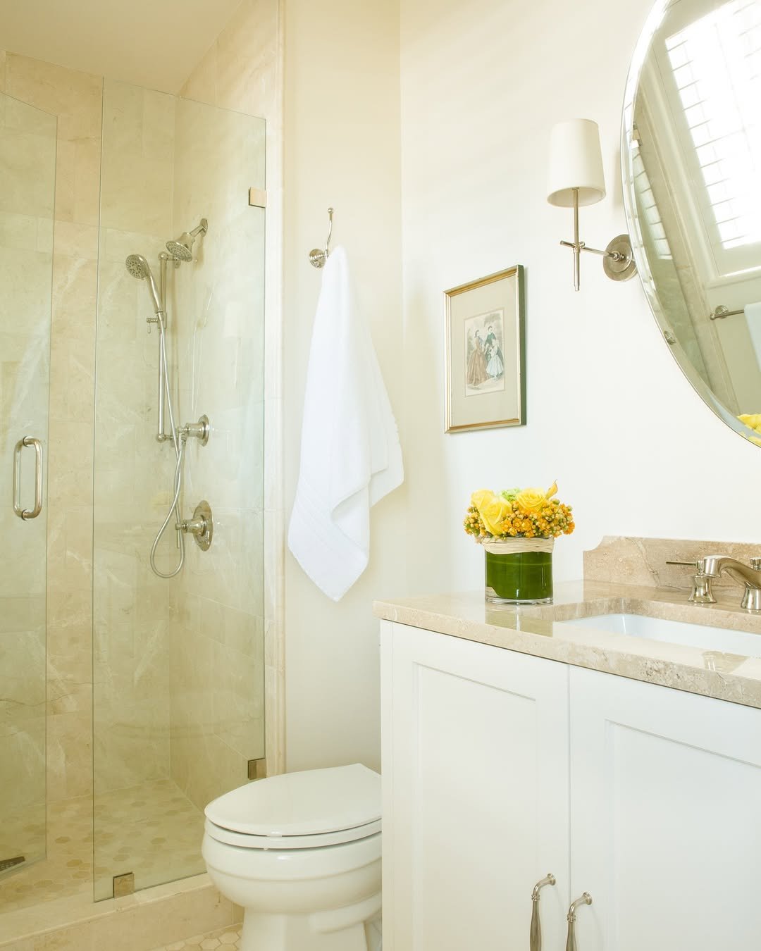 It’s the kind of bathroom that quietly lifts your mood. Bright, calm, and just a little bit pretty without crossing into over-decorated territory.
