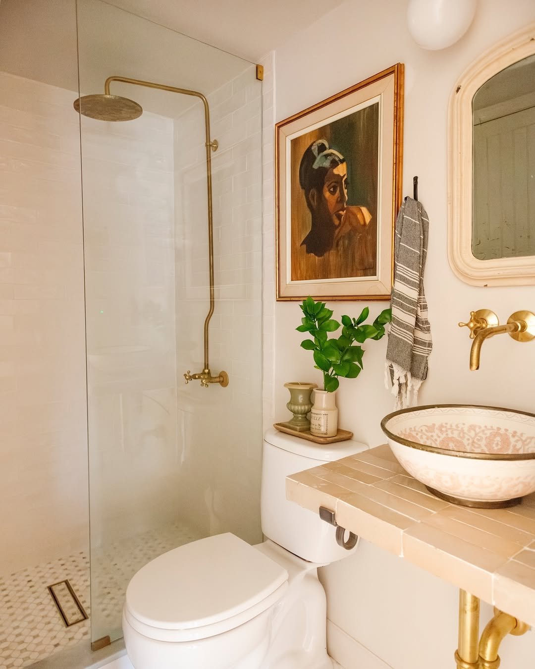 It gives off that “collected over time” energy. Like every piece has a story, and somehow they all ended up in the same perfect little bathroom.