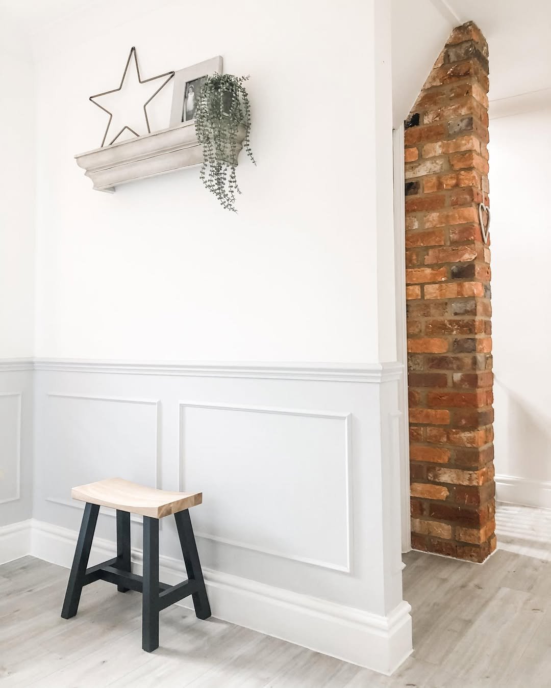 The small shelf and simple decor keep things light, letting that brick detail stand out without overwhelming the space. It’s subtle, but it makes the hallway feel layered.