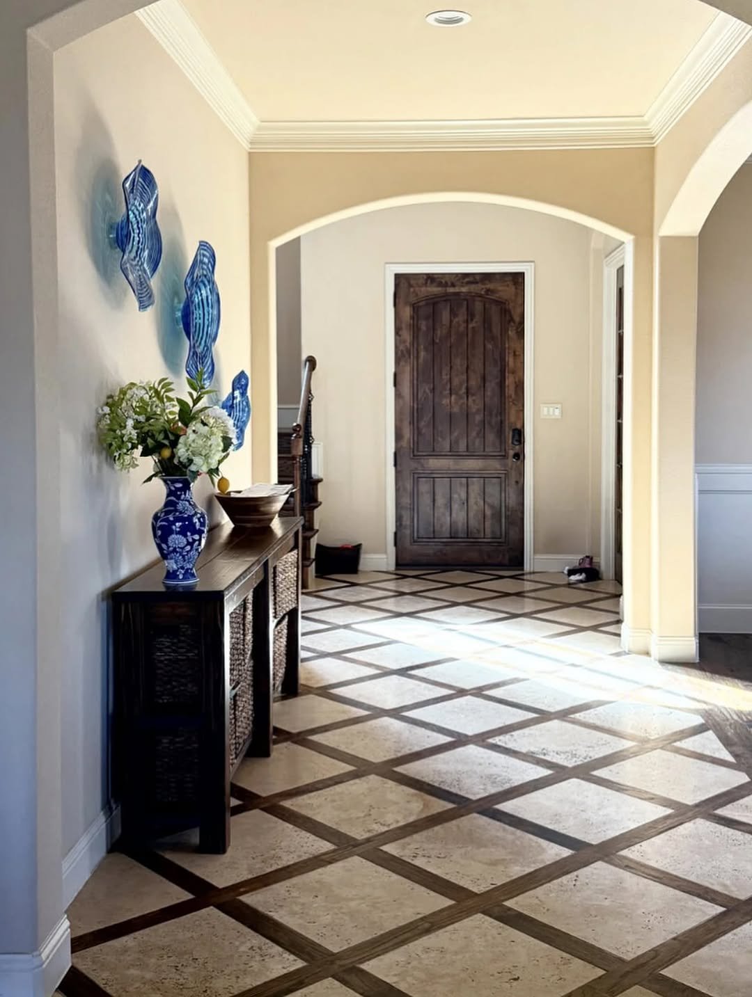 It draws your eye upward and adds drama without overwhelming the space. A simple shift, but it completely changes how the hallway feels, like a quiet design secret waiting to be noticed.