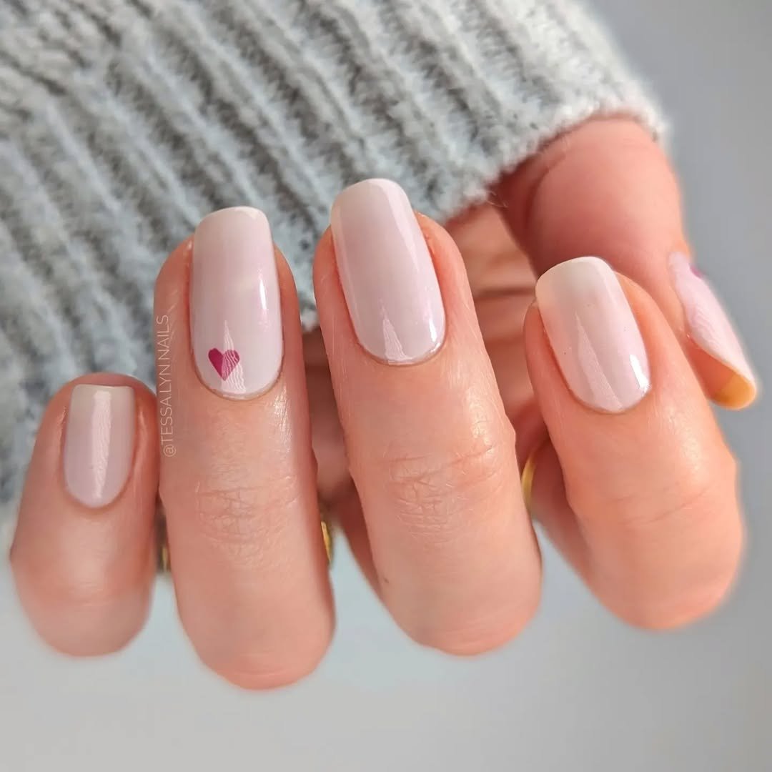 There’s something so tender about a sheer nude base paired with a single, tiny heart. It’s understated in the best way — the kind of design that whispers “romantic,” not shouts it.