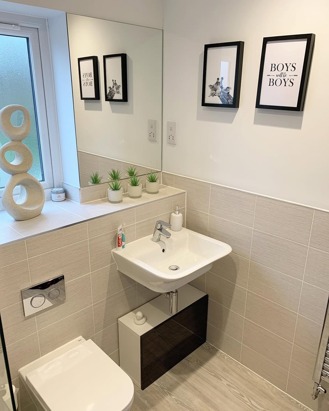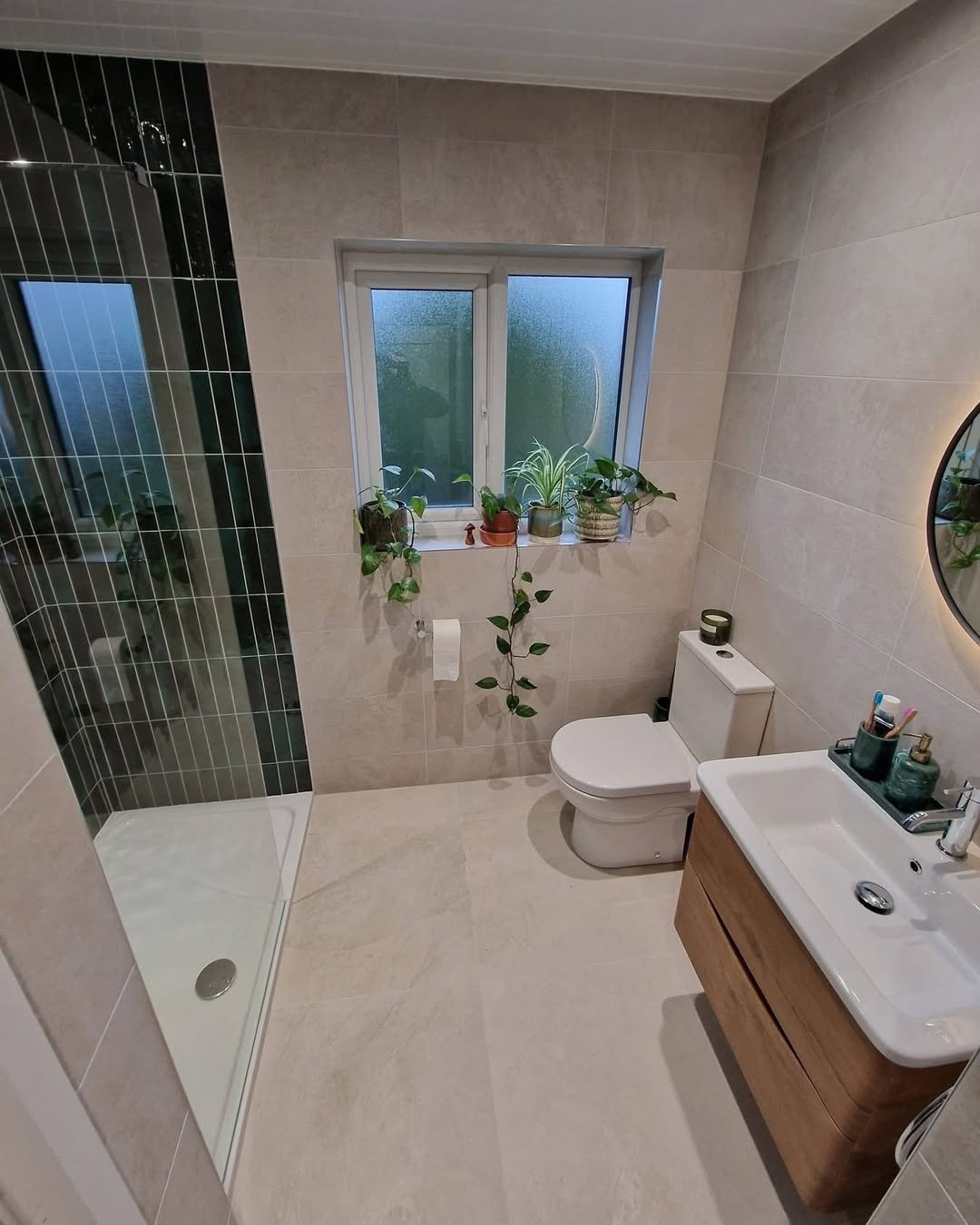 This one feels real and lived-in—in a good way. Neutral tiles, simple layout, and those plants by the window bringing everything to life.