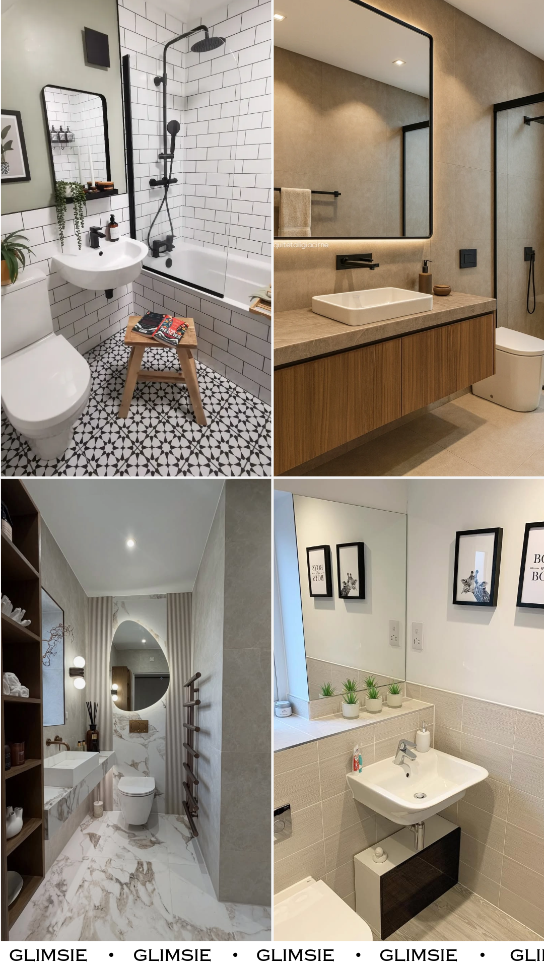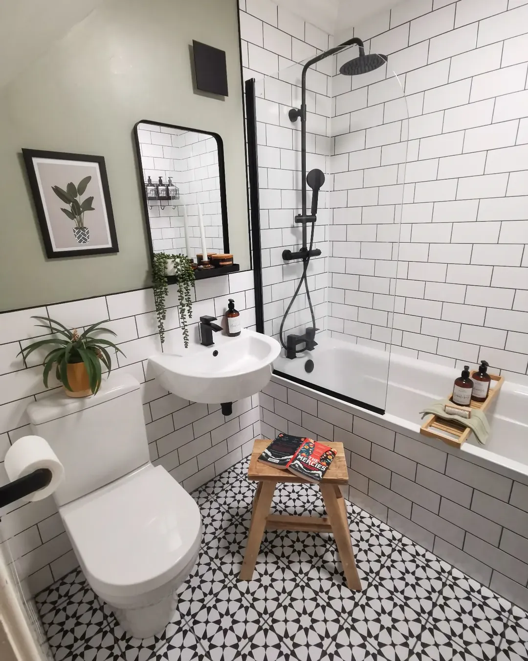 This is proof you don’t need a massive space to get that hotel feel. The crisp white subway tiles, matte black fixtures, and that tiny wooden stool moment? It’s giving curated, not crowded.