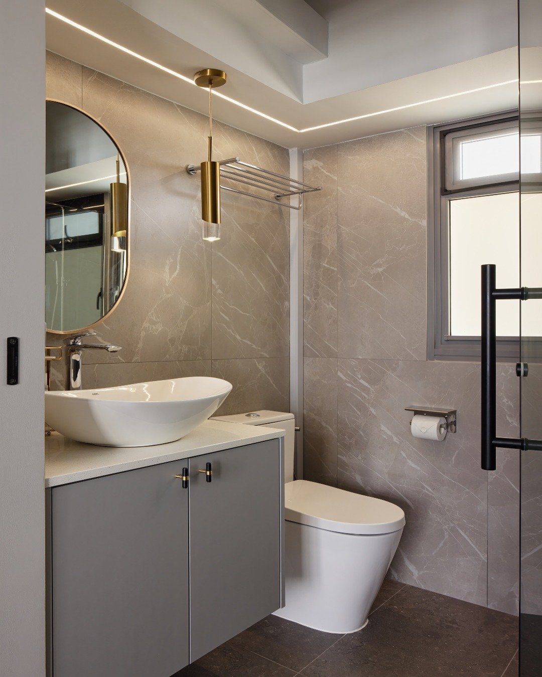 It’s calm, polished, and quietly luxurious. The kind of bathroom that makes slow mornings feel like a ritual.