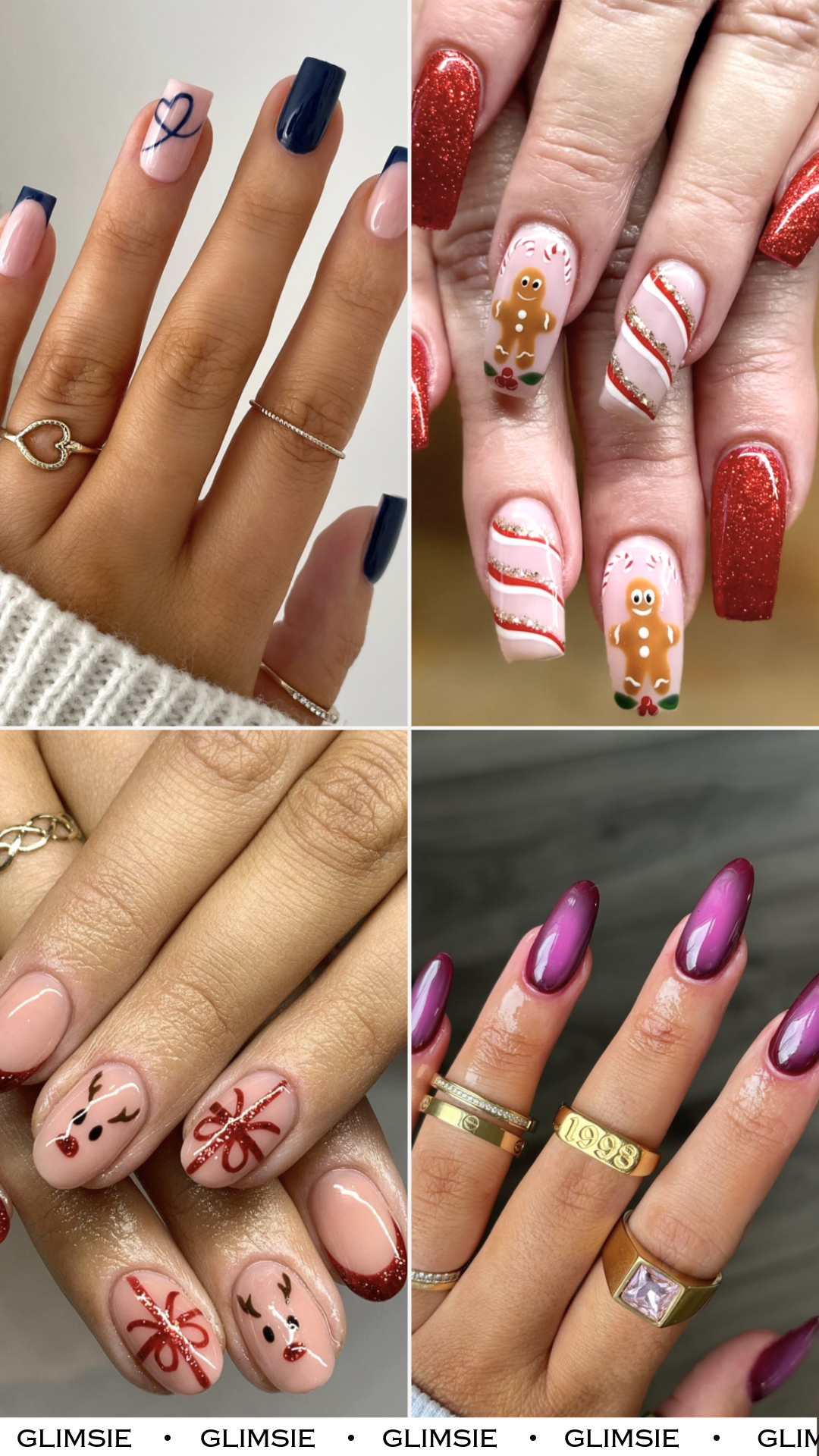 There’s drama here, but it’s elegant drama. Perfect for someone who wants holiday-themed nails that still look sophisticated and slightly moody in the best way.